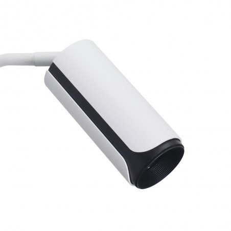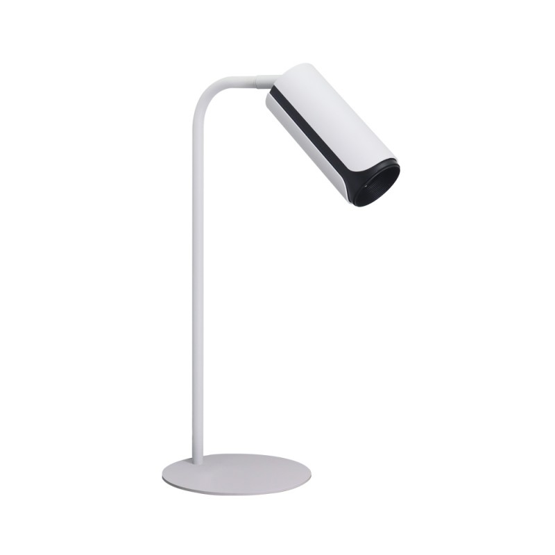 Lámpara de mesita de noche Gobi. Diseño minimalista con foco tubular orientable para dirigir el punto de luz. Fabricada en aluminio blanco arenado con la parte interior del foco en color negro. Ideal para colocar en la mesita de noche o en el escritorio. Colección de iluminación decorativa Gobi.