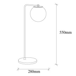 Lámpara de mesa decorativa de estilo sencillo. Cuerpo metálico fijo con lacado dorado con base redonda de 12 cm y una tulipa de cristal blanco mate. Altura total de 55 cm. Para bombilla E27, no inclida.