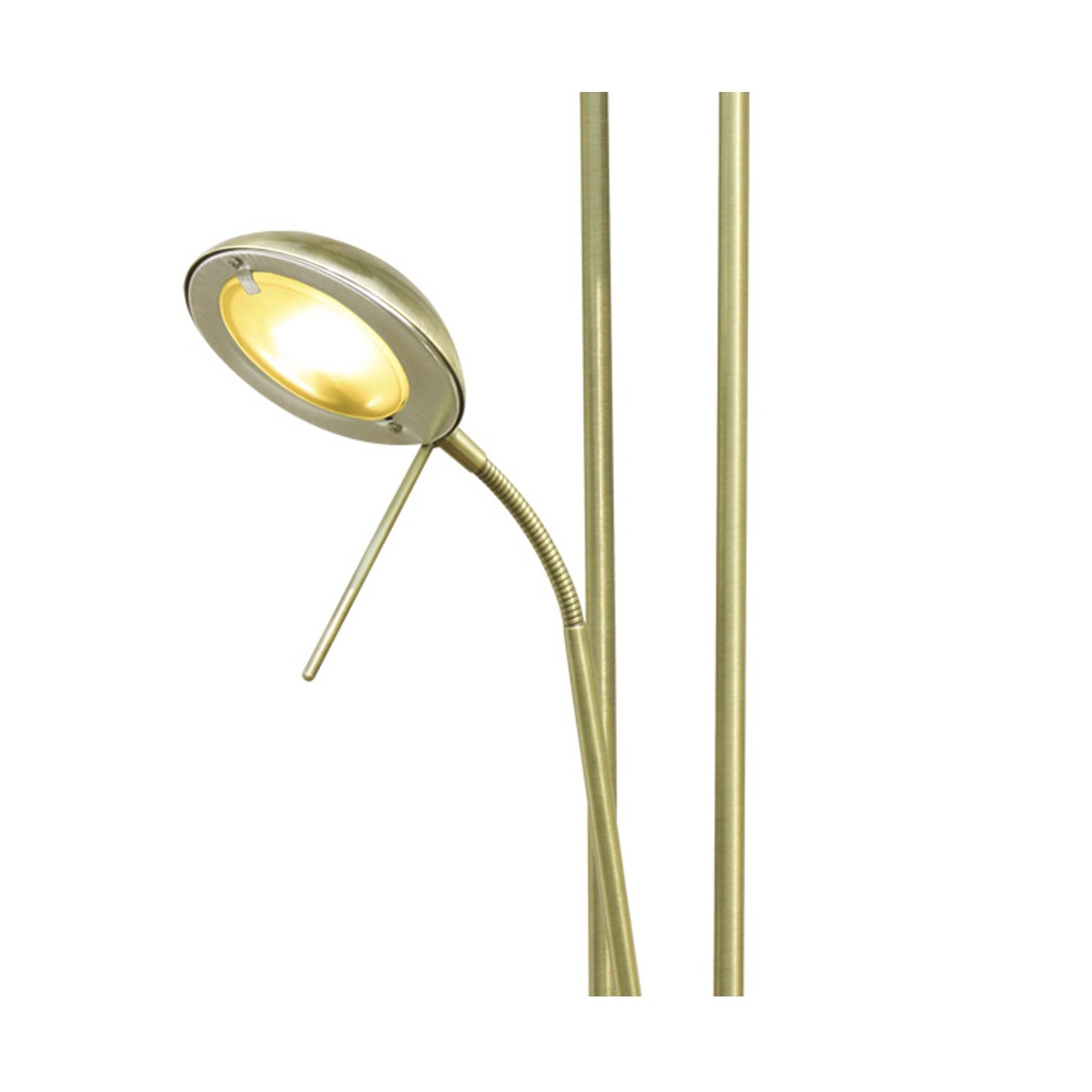 Luz principal LED (18W) y brazo lector con luz LED (5W). Luz cálida 3000ºK. Perfecta para colocar entre sofás, asegurando un mínimo gasto. Ambas luces se pueden regular en intensidad adaptándose a la necesidades del momento.