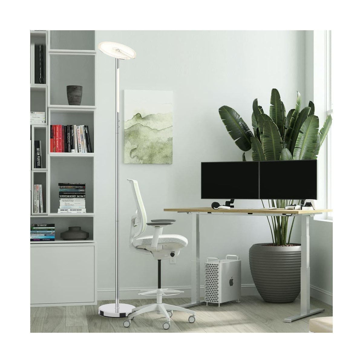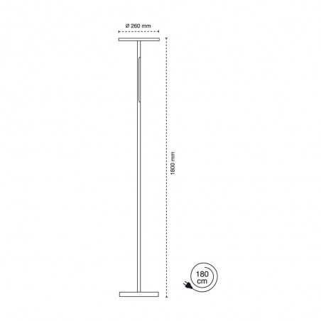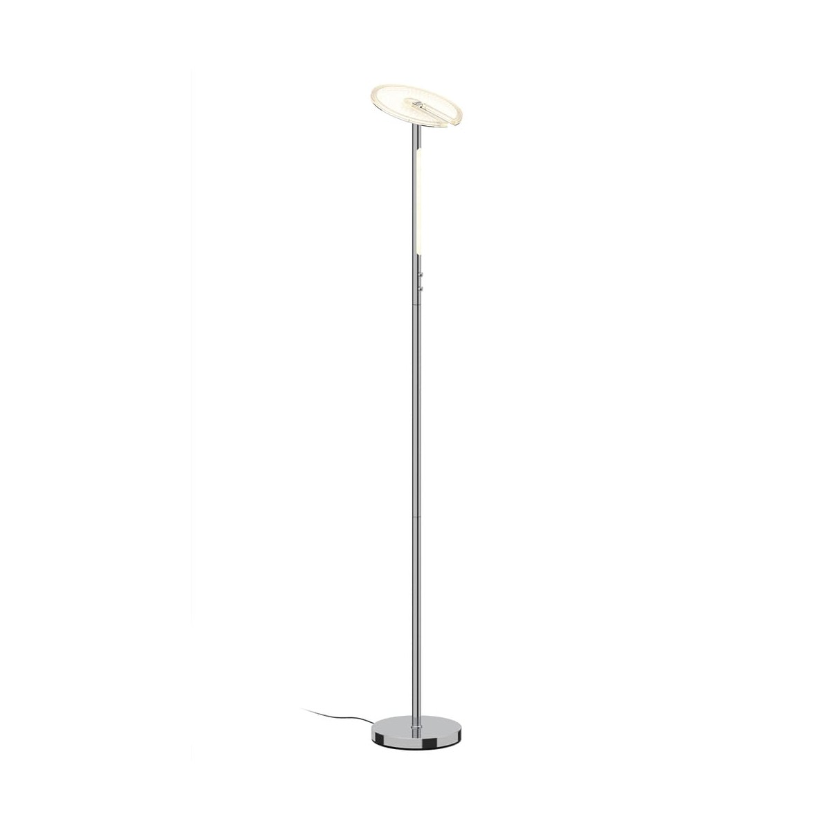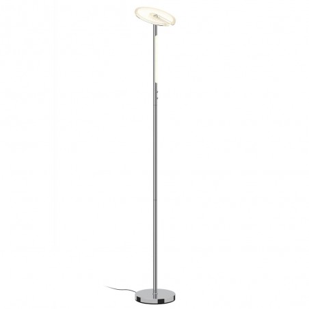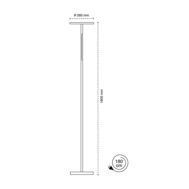 Lámpara de pie LED con dos luces independientes de luz cálida de intensidad regulable. La luz principal de 18W puede orientarse mientras que la luz de 4W del lector esta integrada en el cuerpo de la lámpara. La largura del cable mide 1,8 metros.