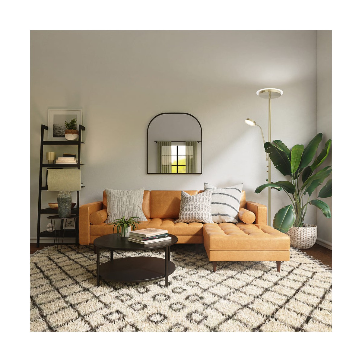 Lámpara de pie LED con dos luces independientes de luz cálida de intensidad regulable que pueden orientarse. La potencia de la luz principal es de 18,5W y la luz del lector es de 4,5W.