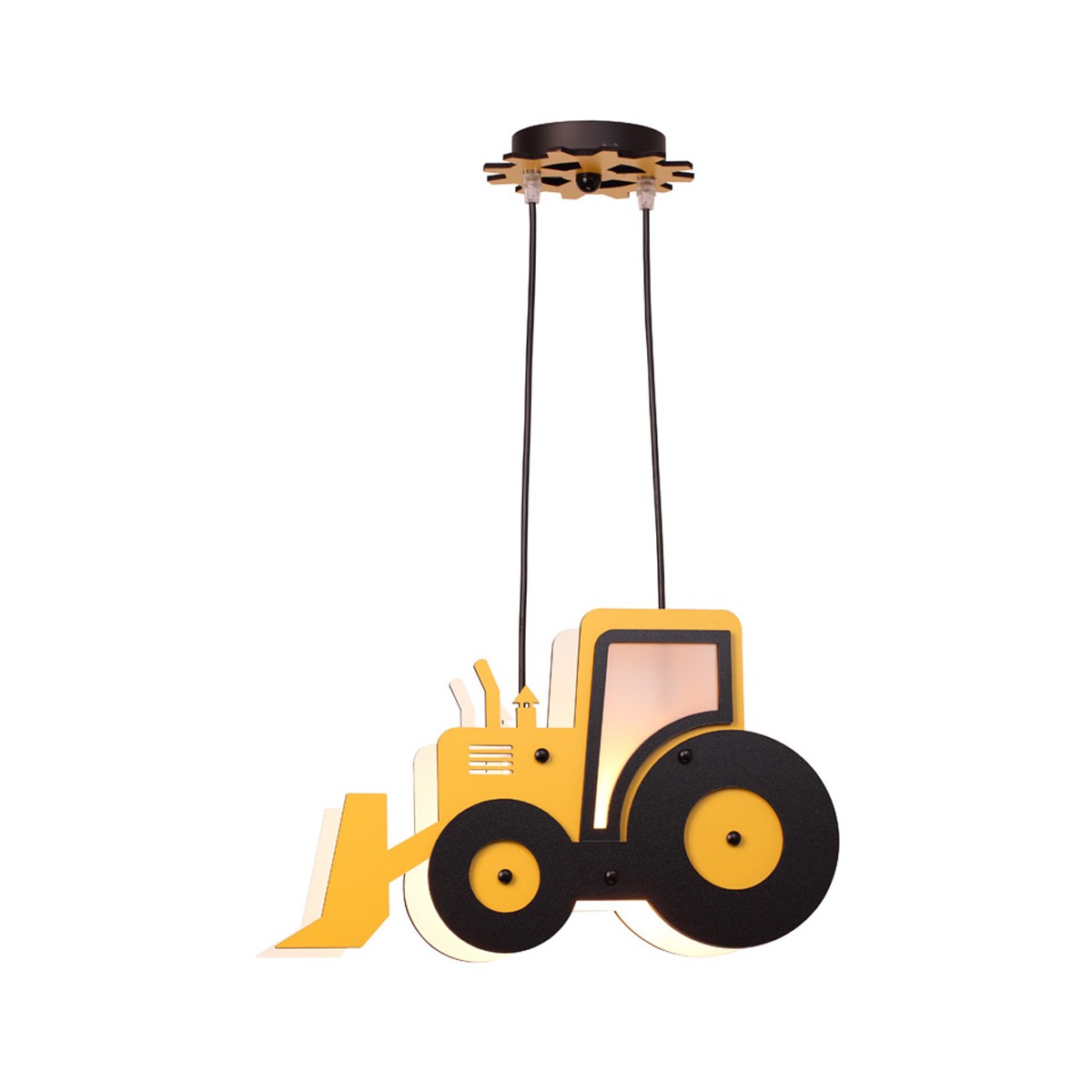 Lámpara de techo con forma de divertida excavadora en color amarillo. Lámpara infantil perfecta para decorar habitaciones infantiles. Las bombillas se reemplazan facilmente.