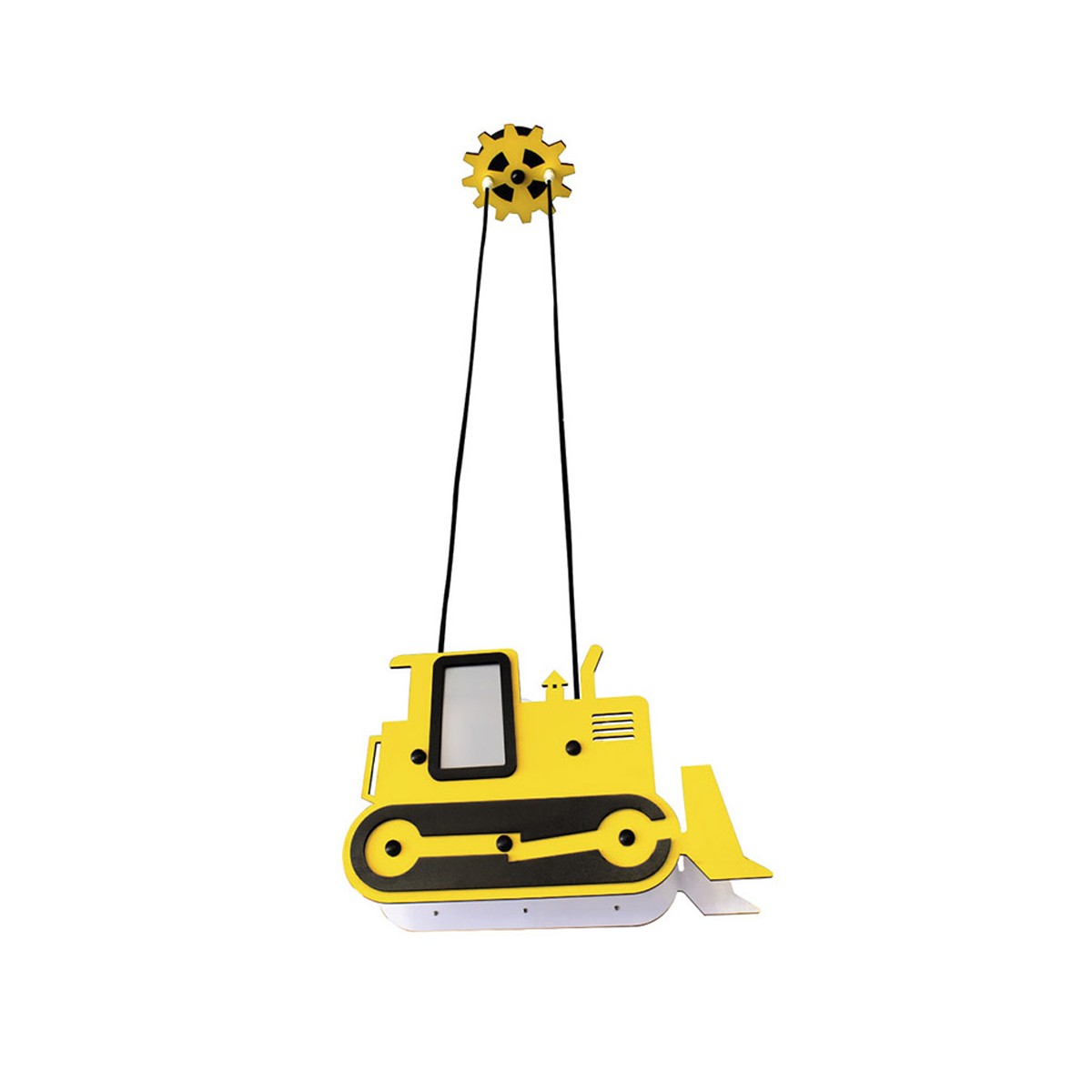 Lámpara de techo con forma de divertida excavadora en color amarillo. Lámpara infantil perfecta para decorar habitaciones infantiles. Las bombillas se reemplazan fácilmente.