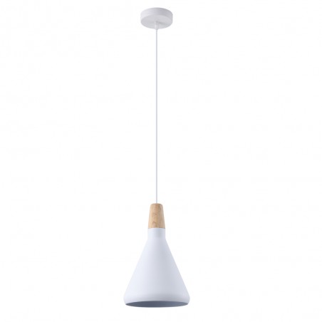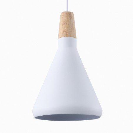 Lámpara colgante de estilo escandinavo. Lámpara de techo con metal blanco y madera inspirada en el estilo de iluminación escandinavo. Esta combinación de materiales y colores es ideal para darle un toque nórdico a la iluminación y decorativa de una estancia. Puedes instalar varias lámparas de techo a lo largo de una encimera de cocina.