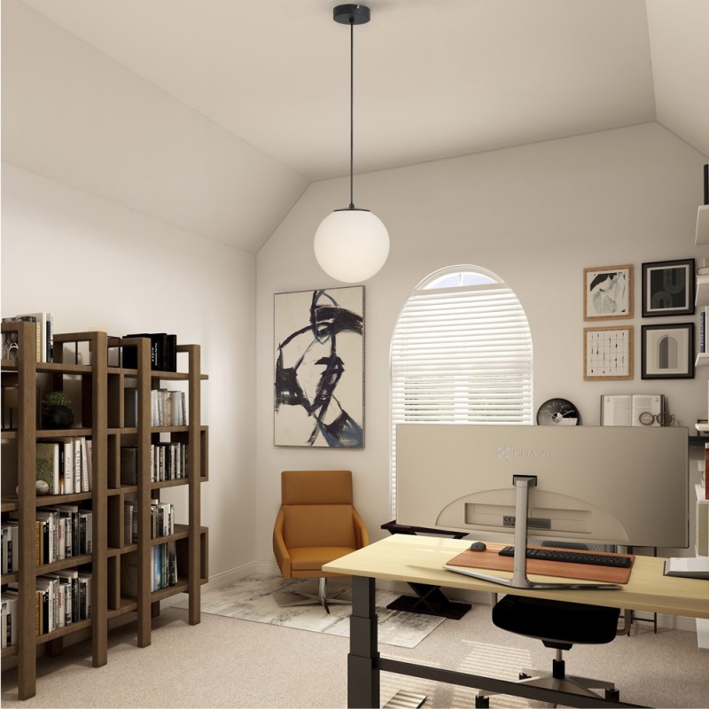 Lámpara colgante con tulipa esférica de cristal opal. Lámpara de techo para la iluminación decorativa de una estancia de casa, un local comercial o un restaurante. Tulipa esférica de cristal opal. Capacidad para colocar una bombilla E14 LED.