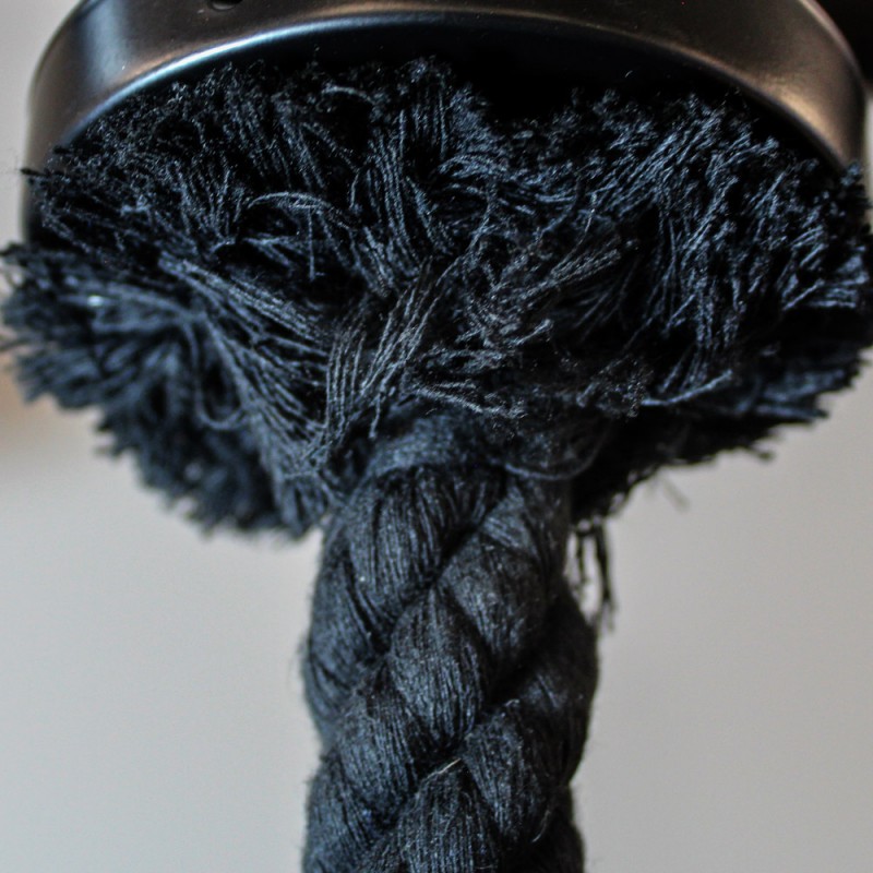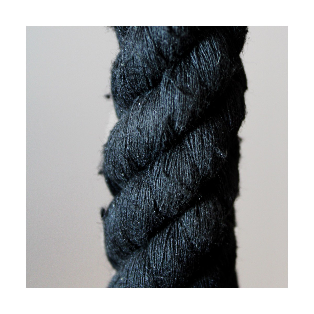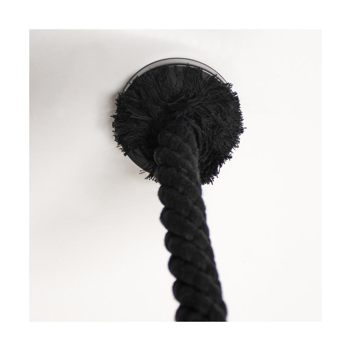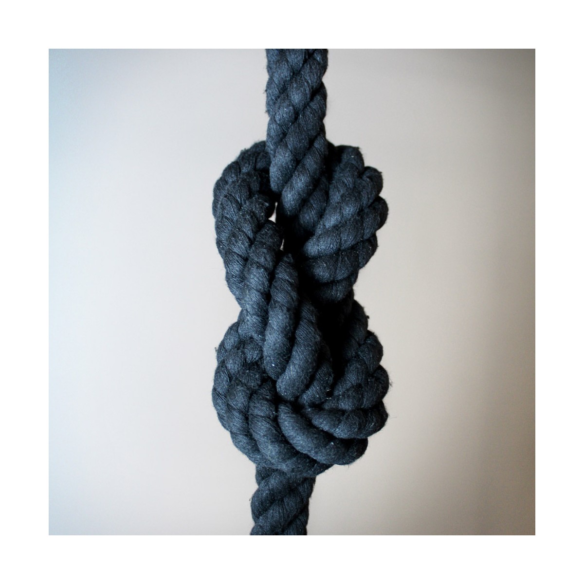 Lámpara colgante de cuerda perfecta para crear ambientes retro-vintage. Puedes anudar la cuerda con diferentes nudos para conseguir diferentes efectos. Cuerda, portalámparas y florón de color negro. Una lámpara colgante ideal para locales comerciales o habitaciones de estilo industrial o rústico.