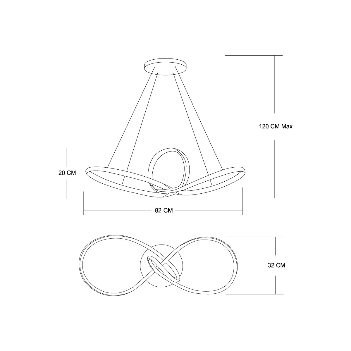 Lámpara de techo colgante con diseño moderno. Iluminación LED integrada que puede ser regulada desde el mando un la aplicación móvil. La altura de la lámpara puede regularse a la hora de instalarla de manera sencilla.