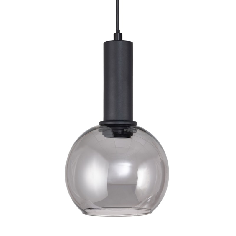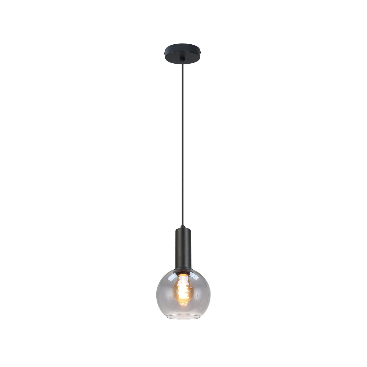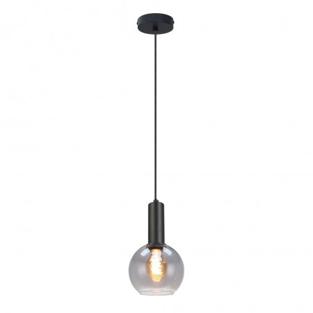 Lámpara colgante de techo con tulipa de cristal ahumado con cable de altura regulable. Apta para bombillas E27, no incluida con la lámpara.
