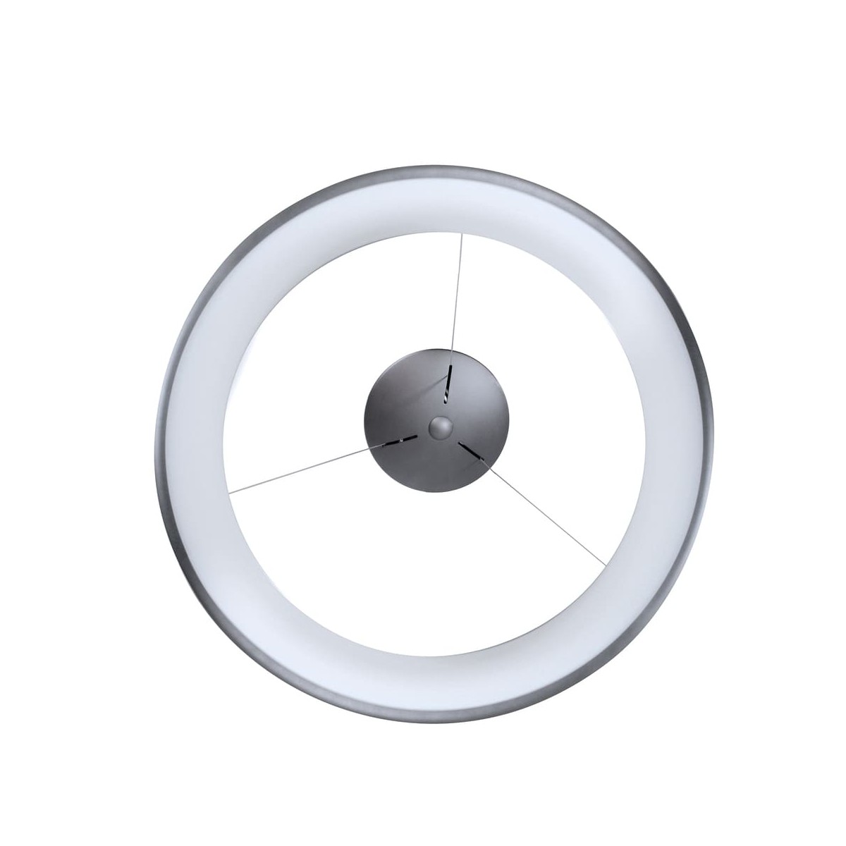 Lámpara de techo colgante con luz led en tono cálido de 3000K. La altura de la lámpara puede ajustarse fácilmente con un sencillo sistema escondido en el florón. Tanto el florón como el aro de la lámpara están fabricados en aluminio con un difusor acrílico que permite pasar la luz reduciendo el índice de deslumbramiento. Puedes encontrar la lámpara en tres acabados diferentes; blanco, café y plata.