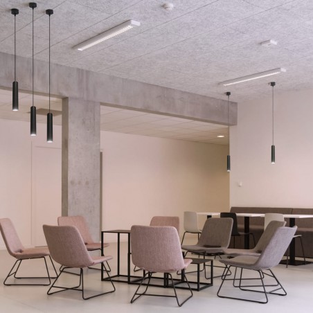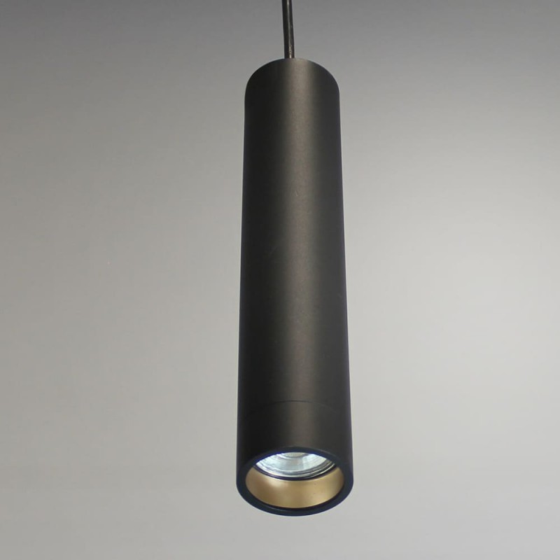 Foco cilíndrico colgante para bombilla GU10, no regulable en altura. Fabricado en aluminio con acabado lacado.
