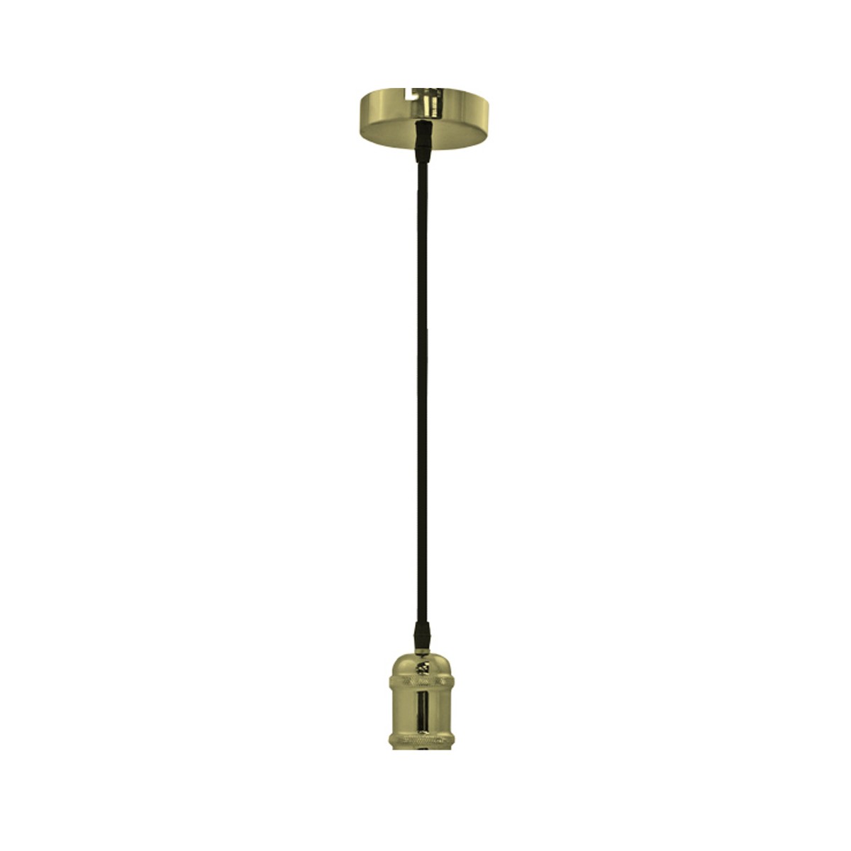 Portalámparas vintage en acabado latón cuero y cable textil negro (bombilla no incluida).