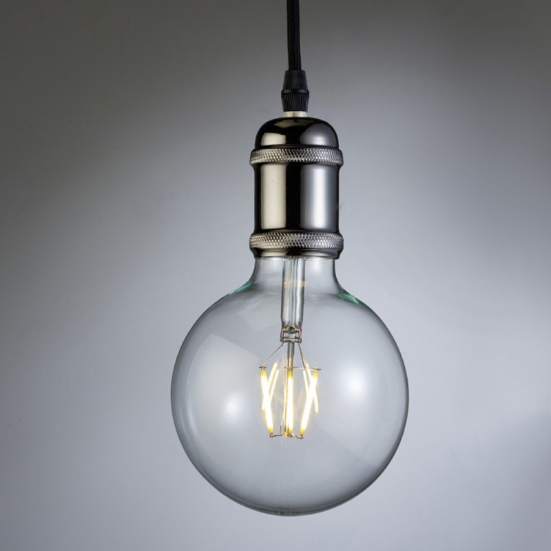 Acabado cromo grafito y cable textil negro (bombilla no incluida).