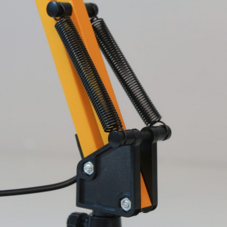 Flexo con luz cálida para habitaciones juveniles. Estructura articulada y difusor orientable para adaptar su posición y proyección de la luz a tus necesidades del momento. Flexo diseñado para utilizar como luz para leer, estudiar o trabajar. Fabricado en aluminio de color naranja con partes en negro. Luz LED cálida.