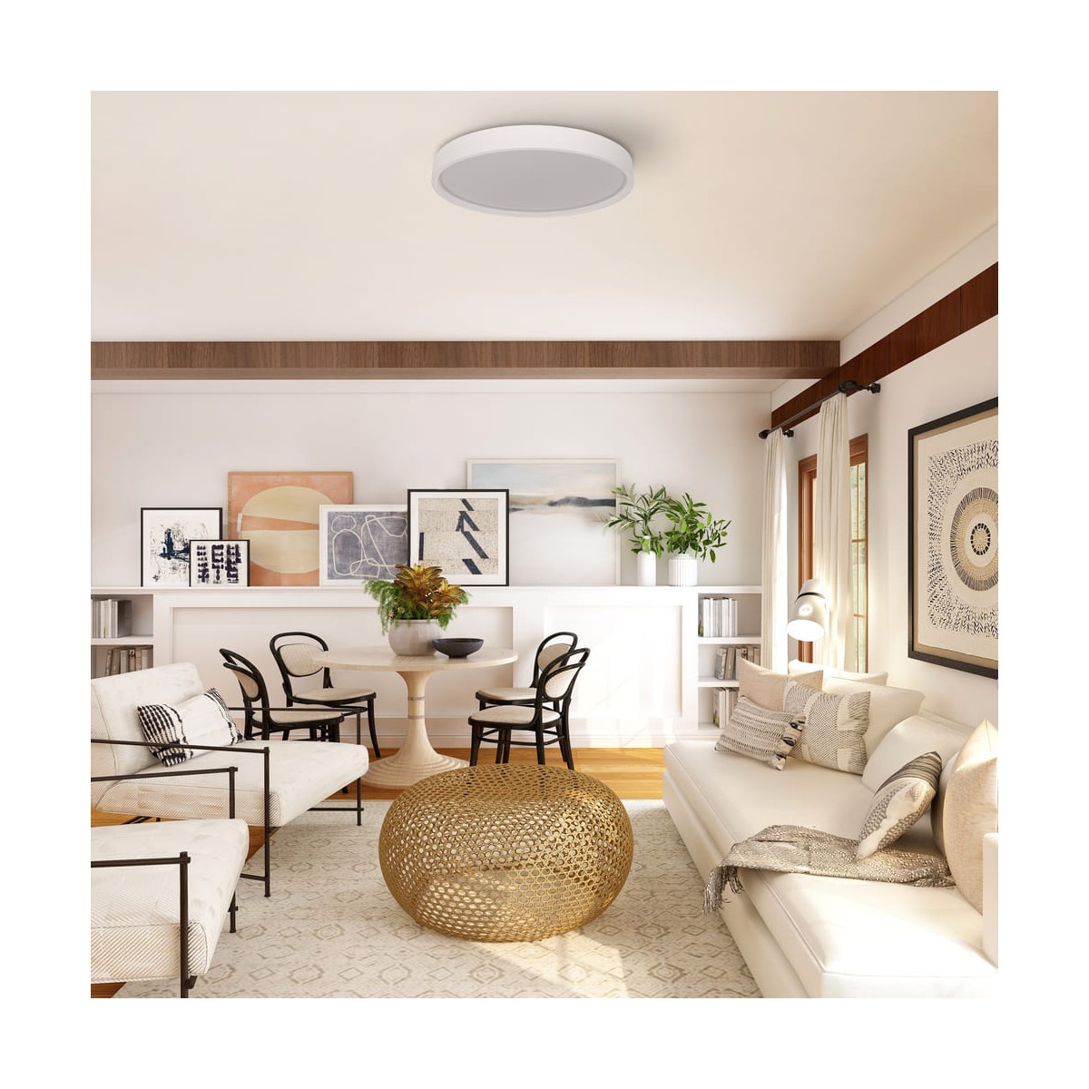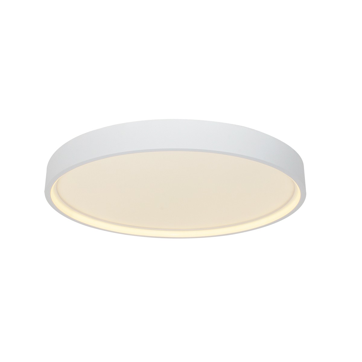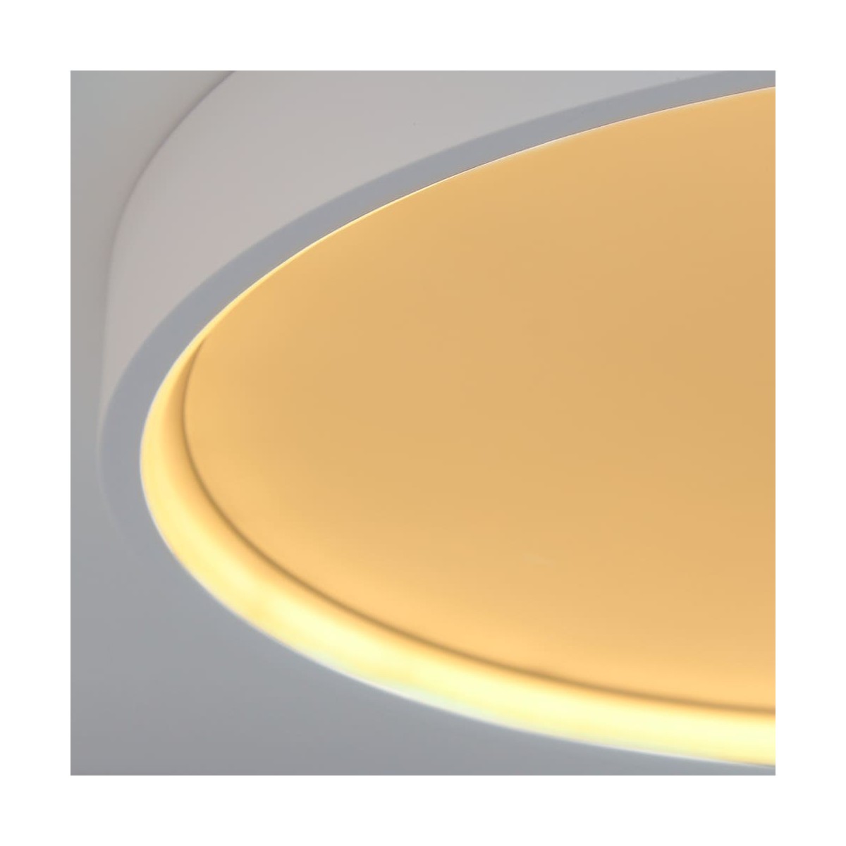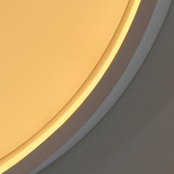 Plafón de techo LED Aster con tres intensidades. Plafón de estilo moderno diseñado para instalar como fuente de luz principal en una estancia. Forma circular con un amplio difusor de policarbonato proyectando la luz de manera uniforme. Iluminación LED en tono cálido.