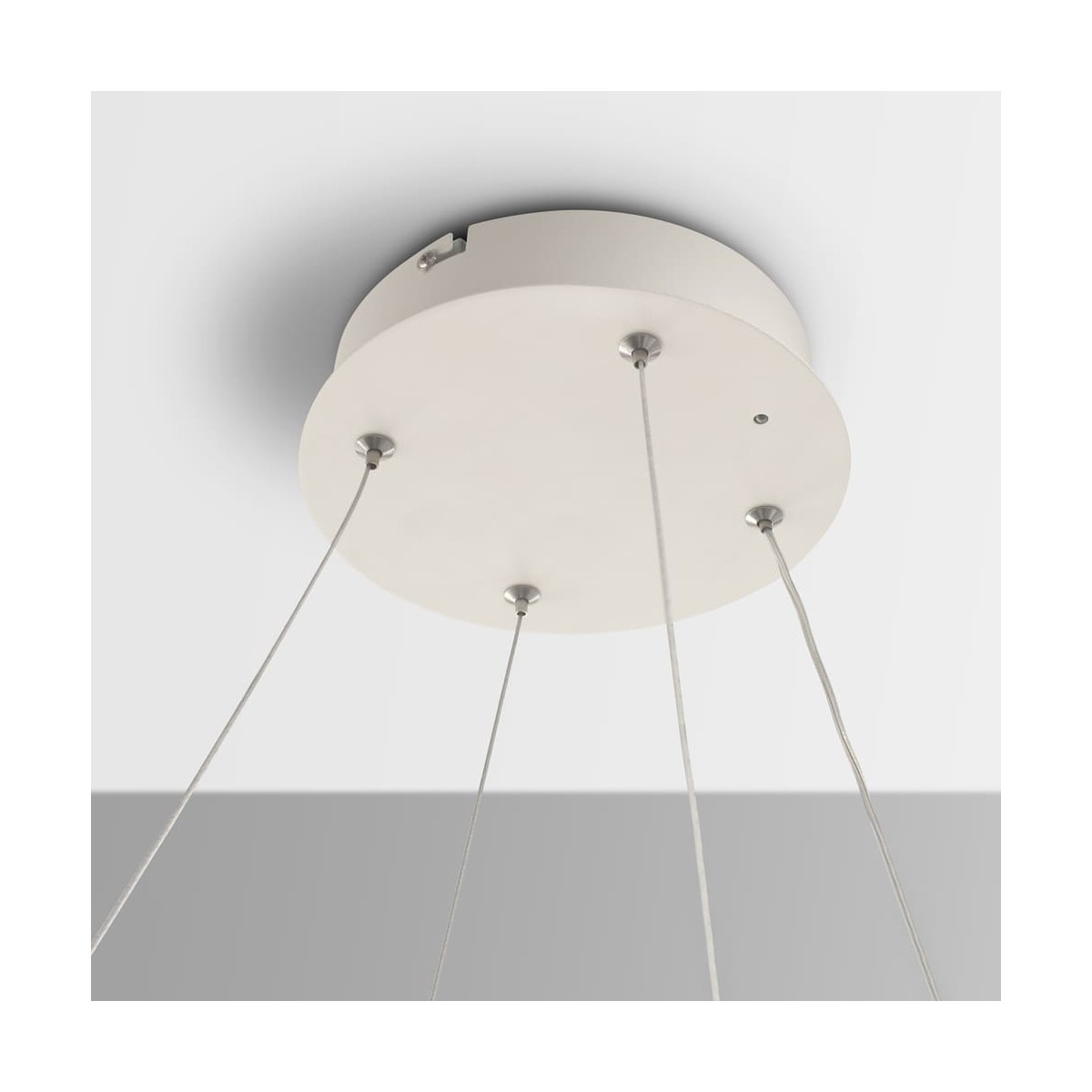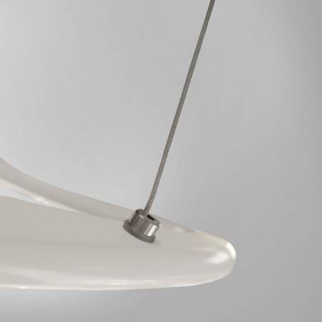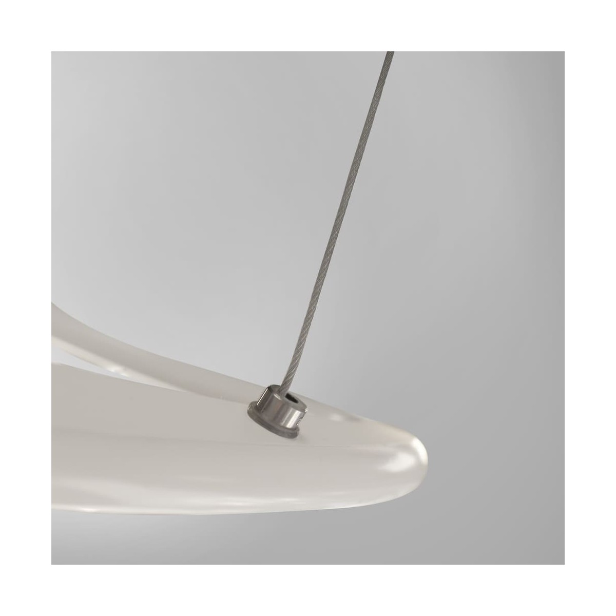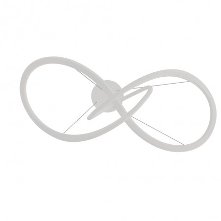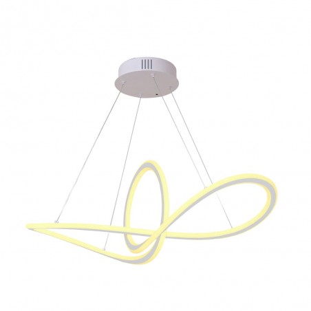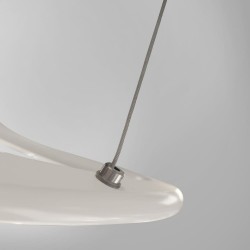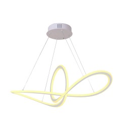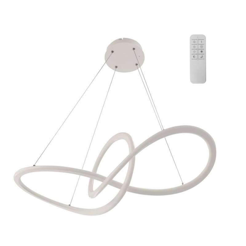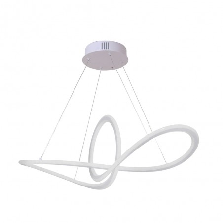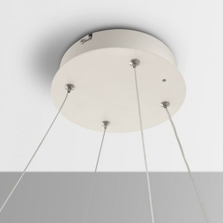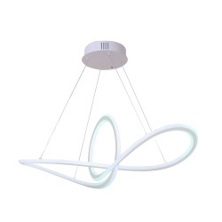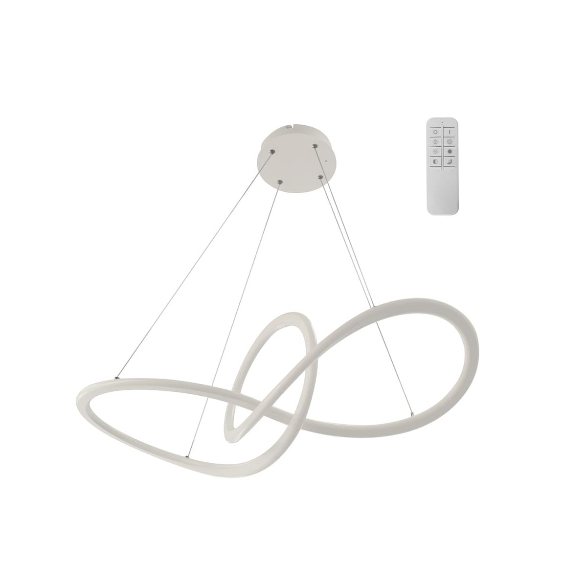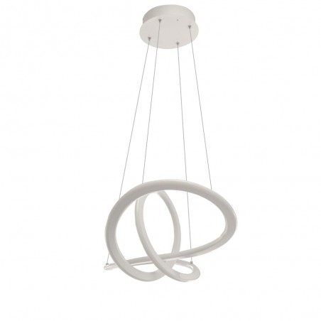 Lámpara colgante para salones modernos. Lámpara de techo con un original diseño ideal para la iluminación decorativa de un salón o un comedor. Incluye un mando a distancia para regular la intensidad de luz y seleccionar entre tres tonos de temperatura de color (2800-4000-5500ºK). La lámpara cuenta con memoria de encendido y un modo de luz de noche. Fabricada en aluminio de color blanco y difusor de policarbonato.