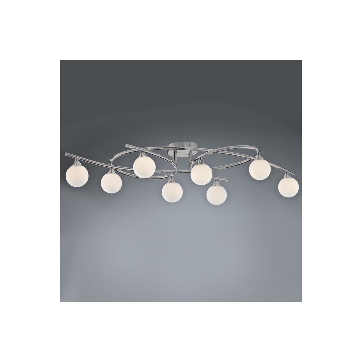 Plafón de acero con 8 tulipas esféricas de cristal transparente.Bombillas G9 no incluidas. Compatible con bombilla LED.
