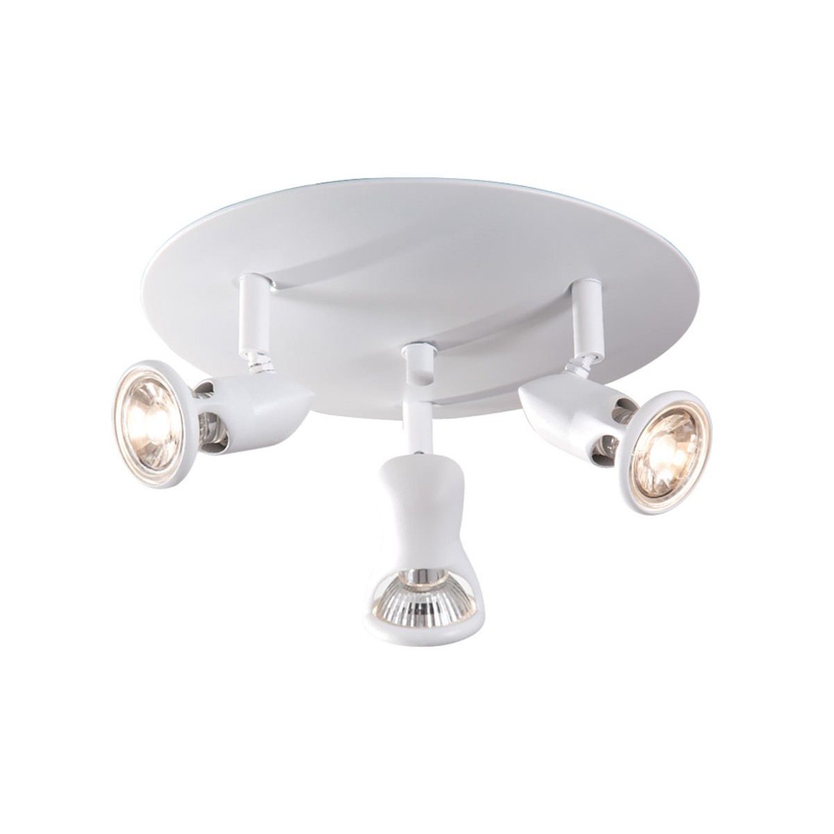 Lámpara de techo en acabado blanco con base redonda y 3 focos. Bombillas G10 no incluidas. Compatible con una bombilla LED.