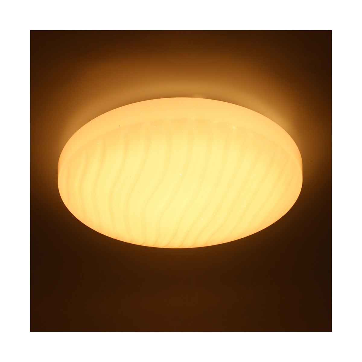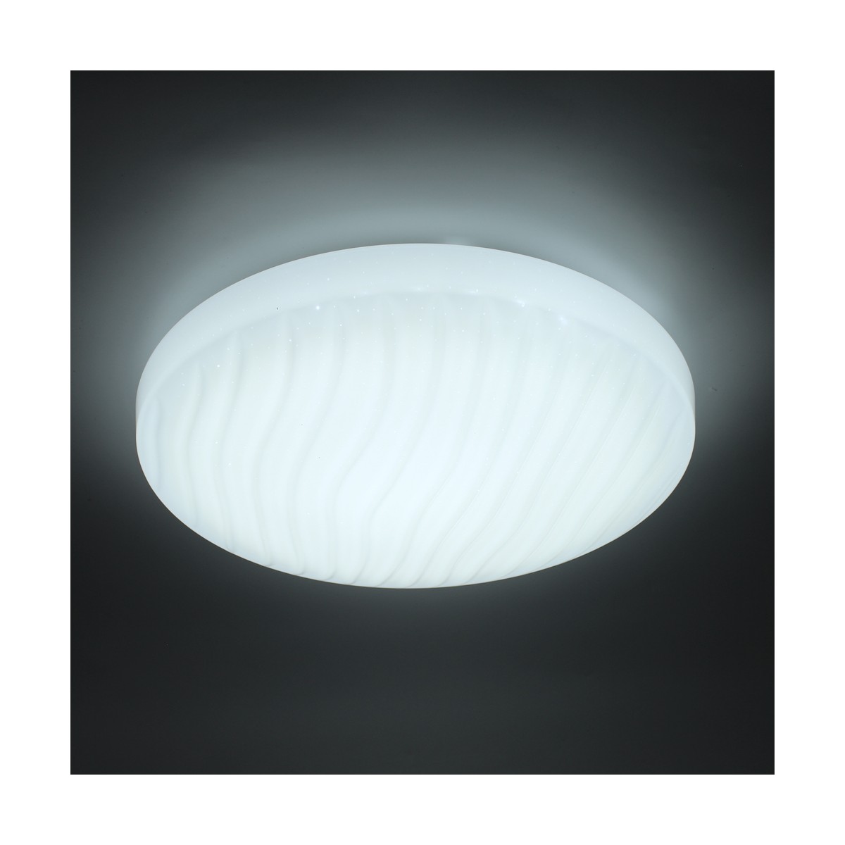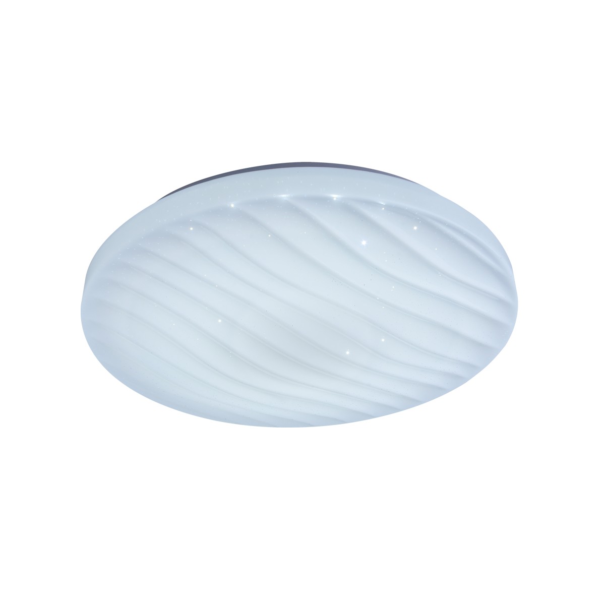 Plafón LED de 40W, 2950lm. Modelo Silvy con efecto estrellas, temperatura regulable de 2700K a 6500K. Tiene memoria de encendido en el interruptor tras permanecer 5 segundos apagado. Incluye mando a distancia. 5 años de garantía.