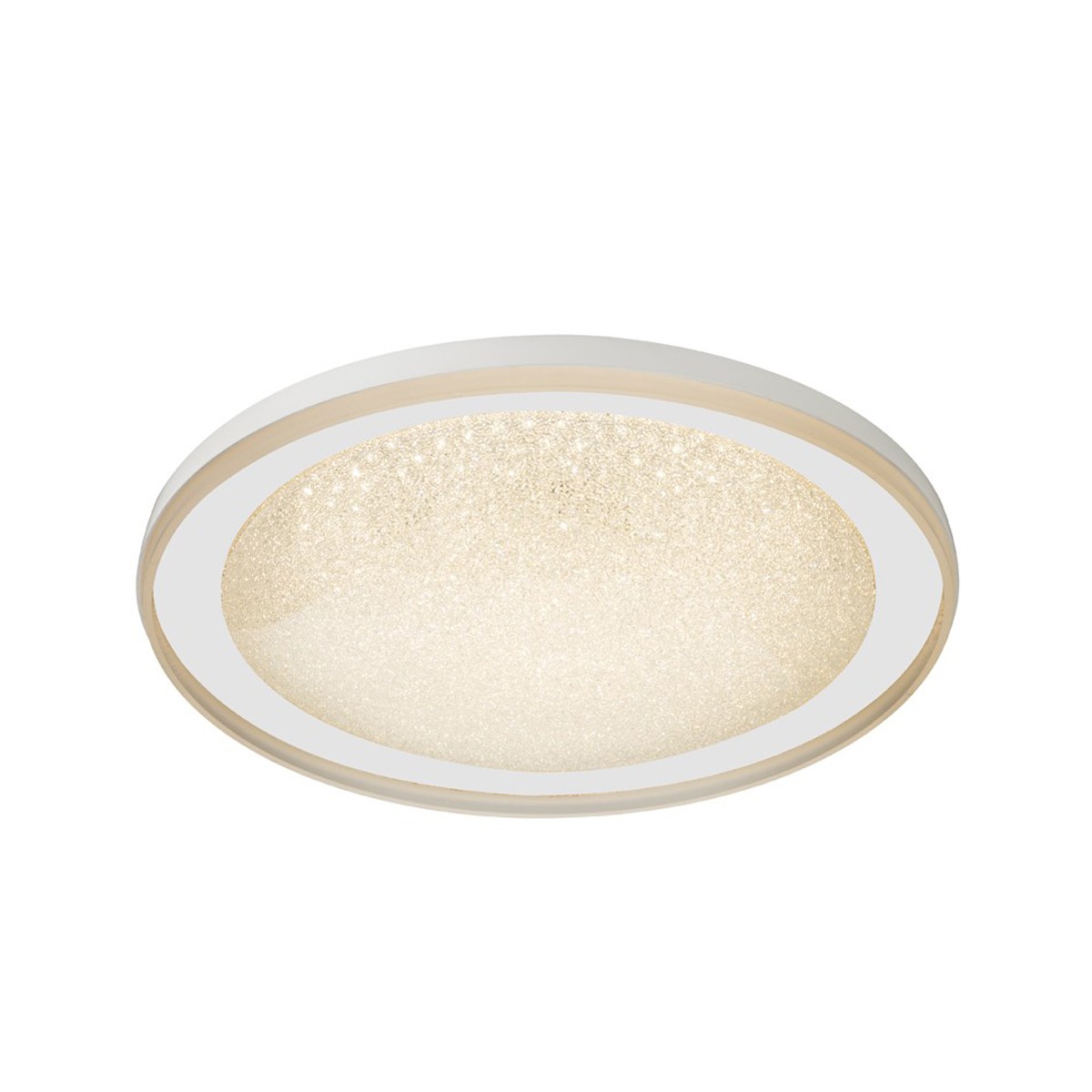 Plafón con iluminación led de 40W, 2800LM. Estructura de metal, cristal y acrílico. Incluye un mando a distancia que permite cambiar la temperatura (3000K/4500K/6000K) y regular la intensidad de la luz. Driver incluido.