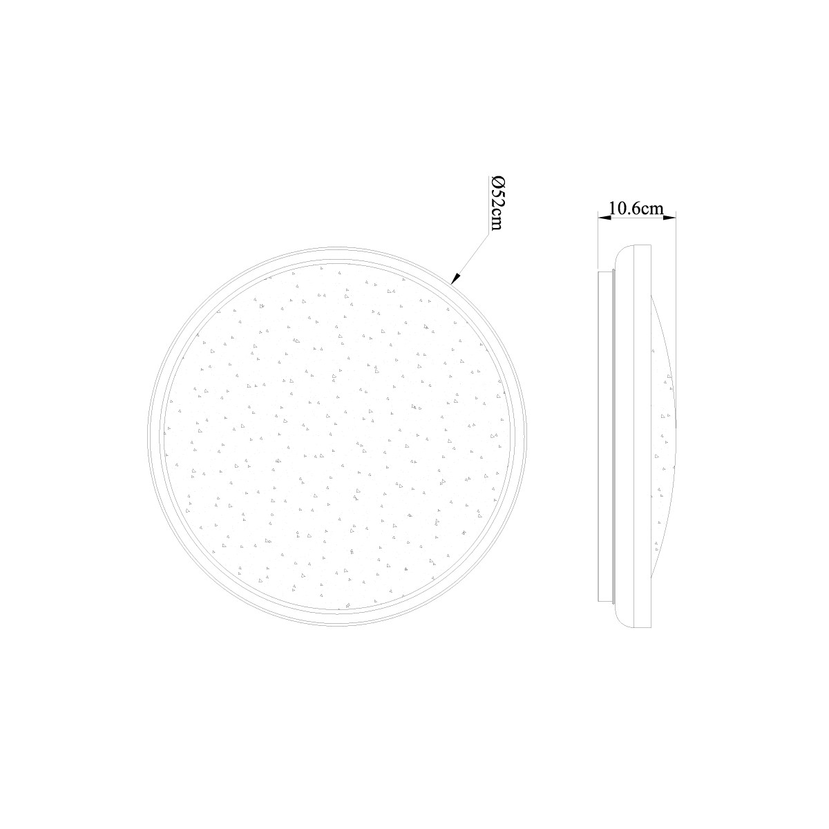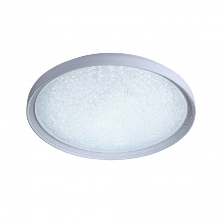 Plafón con iluminación led de 40W, 2800LM. Estructura de metal, cristal y acrílico. Incluye un mando a distancia que permite cambiar la temperatura (3000K/4500K/6000K) y regular la intensidad de la luz. Driver incluido.