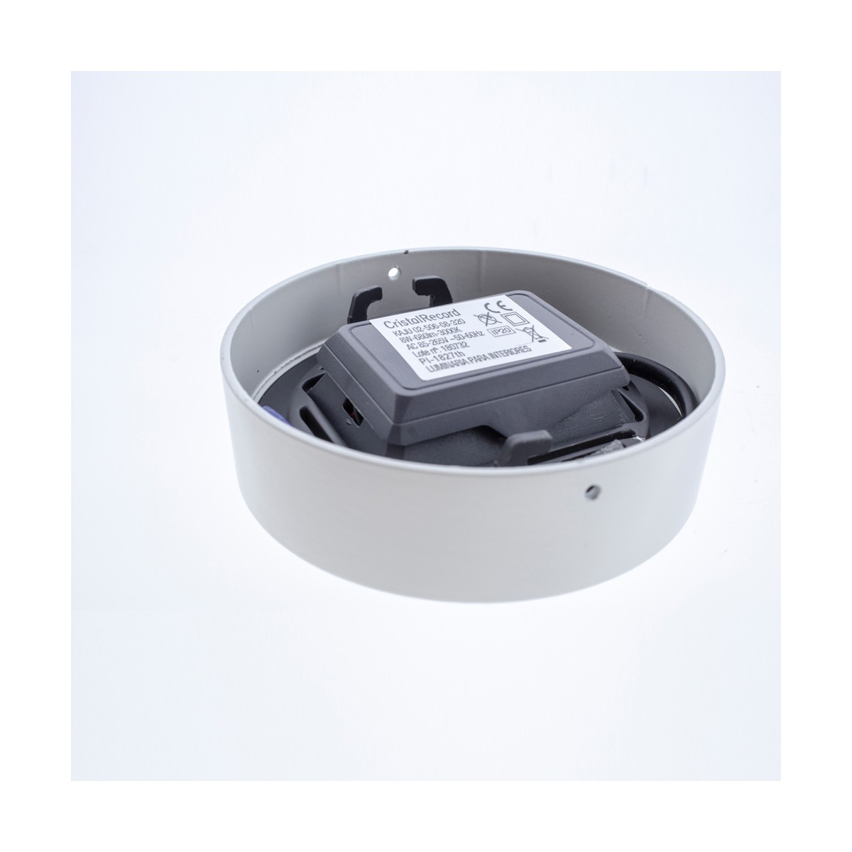Plafón de techo LED Kaju de 8W, en iluminación cálida de 3000K y 680lm. Estructura de aluminio blanco con un diámetro de 90mm.