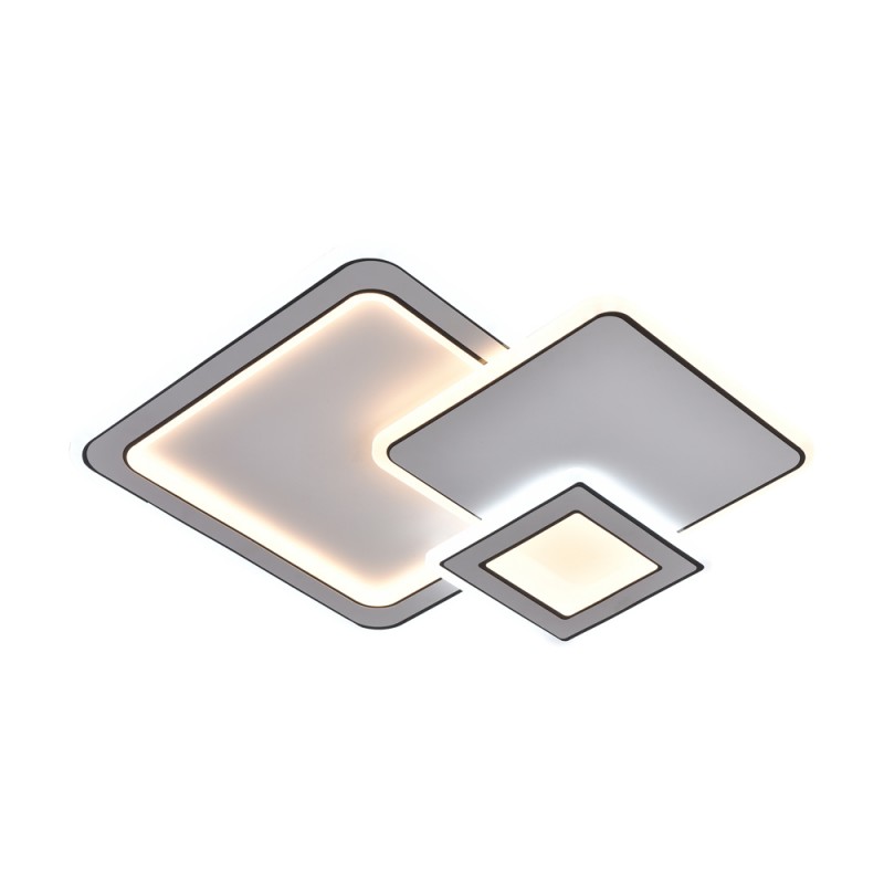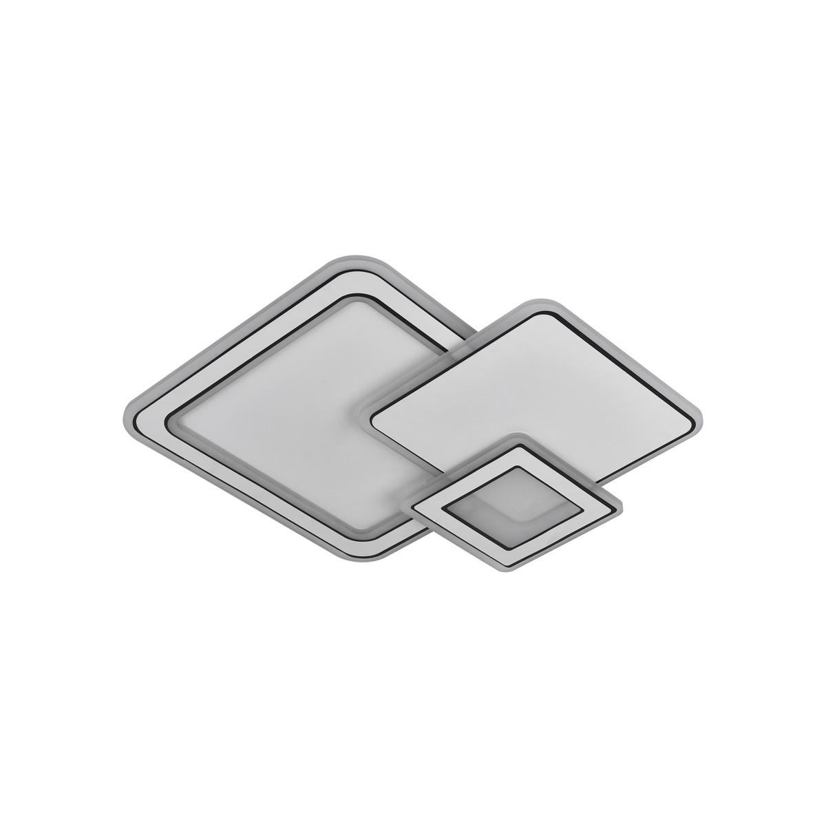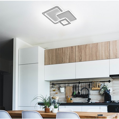 Plafón de techo LED Cora para salones modernos. Plafón de techo con tres temperaturas de color ideal para colocar como iluminación principal en un salón. Diseño moderno con formas cuadradas. Mando a distancia para establecer diferentes tonos de color. Puedes controlar también el plafón con tu smartphone a través de una app.