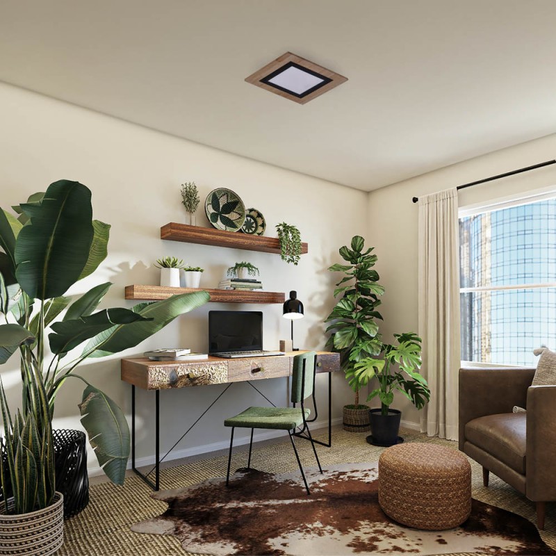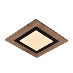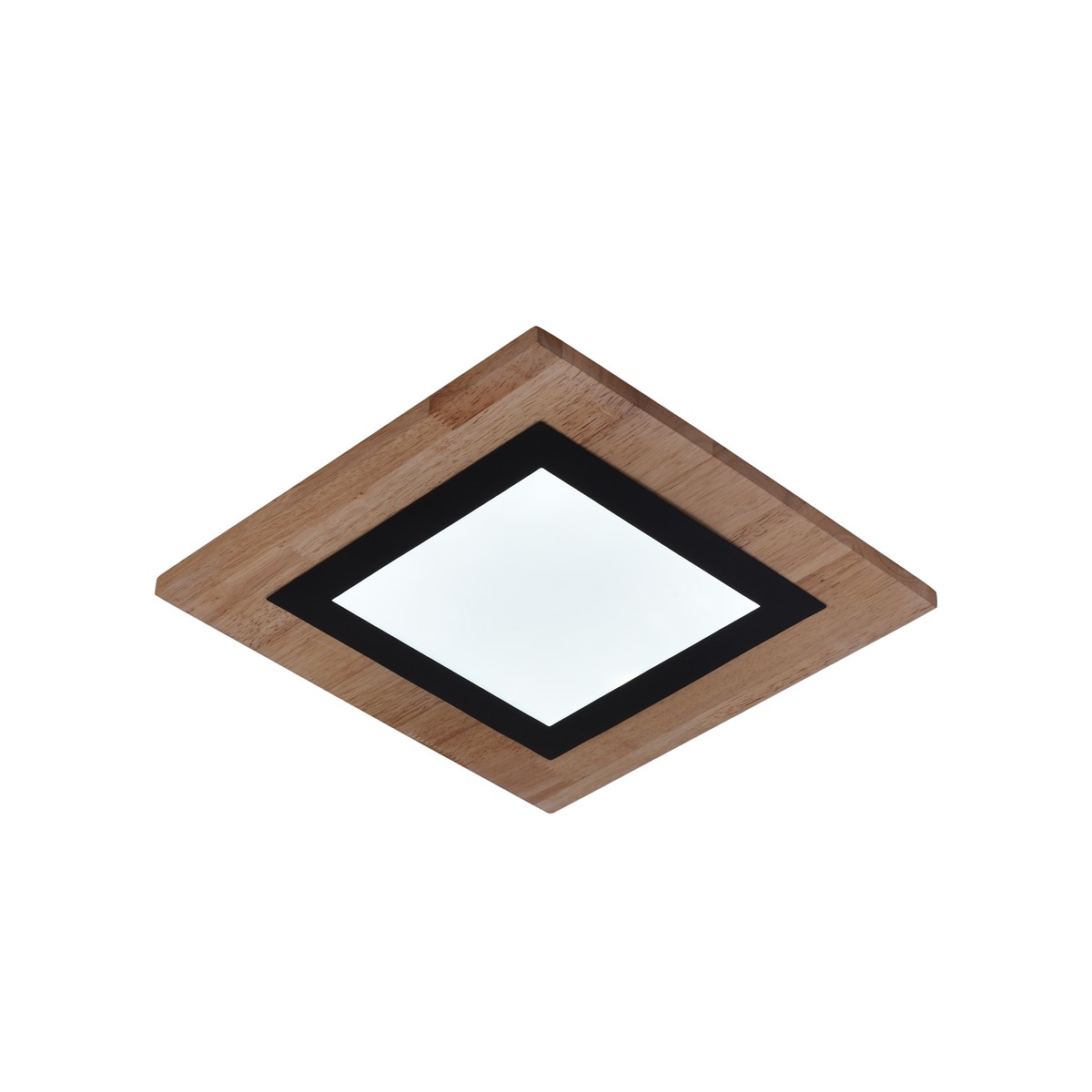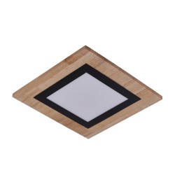 Plafón LED smart para recibidores y estancias. Plafón cuadrado con tecnología Smart y bluetooh para controlar la iluminación desde un smartphone o tablet. Sencillo diseño de forma cuadrada en color madera y un marco interior de color negro. Lleva integrada iluminación LED de 24W y 1400 lúmenes regulable en tono e intensidad de luz. Incluye mando a distancia.