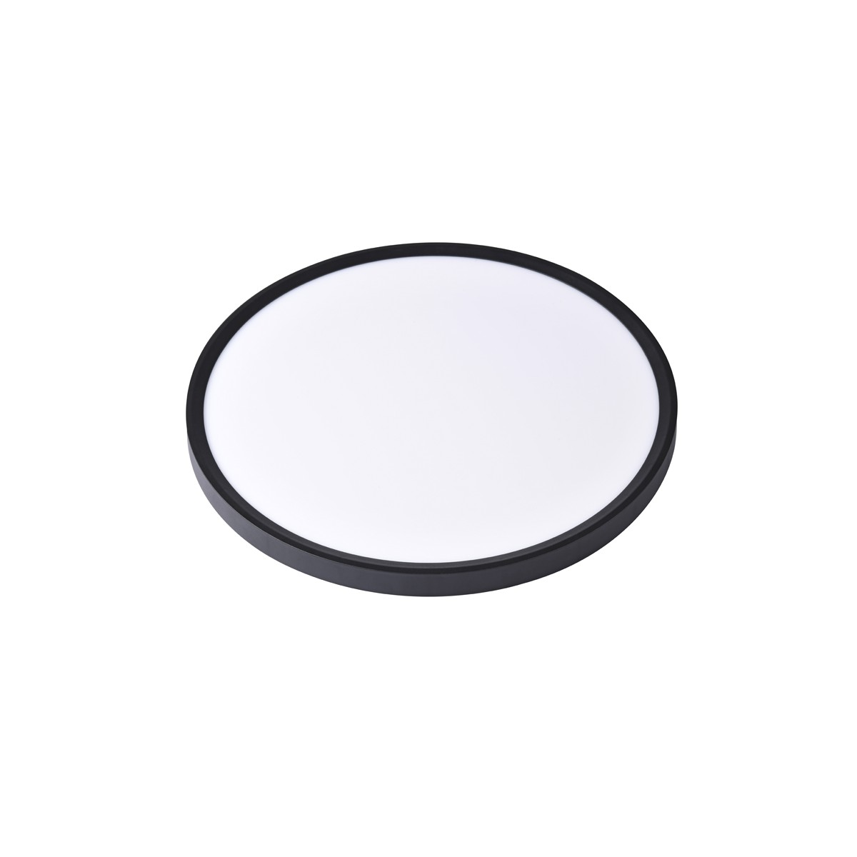 Plafón de superficie con tres temperatura de color. Plafón de techo LED circular ultra slim perfecto para la iluminación funcional de espacios de interior. Cuenta con tres temperaturas de color (3000-4000-6500K)* y con tres intensidades de luz (10-50-100%)**. Fácil instalación directamente en el techo y diseño ultra fino (25mm). Marco de aluminio de color negro y difusor de acrílico.
