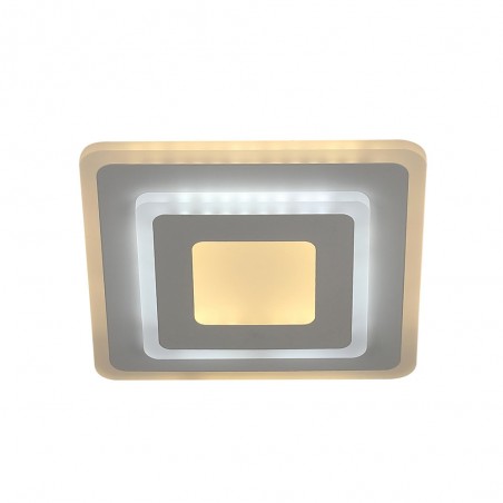 Plafón LED Cryn con tecnología Smart. Plafón cuadrado con iluminación integrada dimmable en intensidad y tres tonos de color diferentes seleccionables. Para poder controlar la luz es necesario conectar el plafón a un smartphone a través de una app (mando no incluido). Su diseño permite instalar el plafón en el techo o en una pared en forma de aplique. Iluminación LED de 50W, 5800 lúmenes y temperatura de color CCT (con app smart).