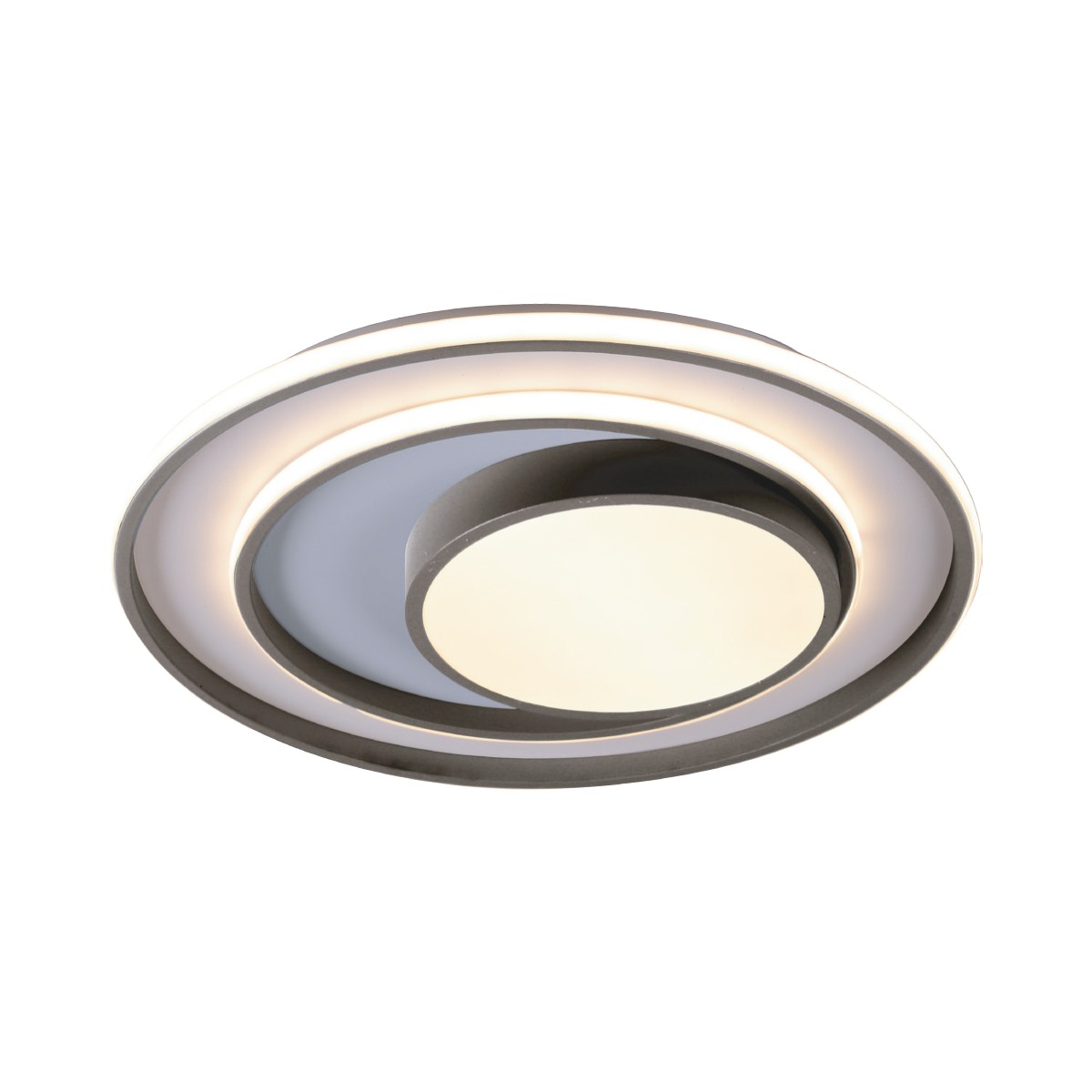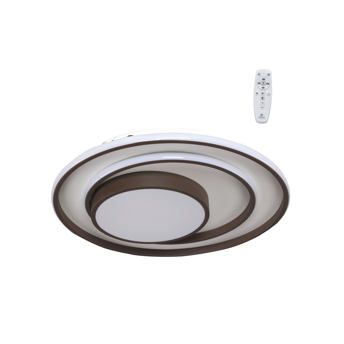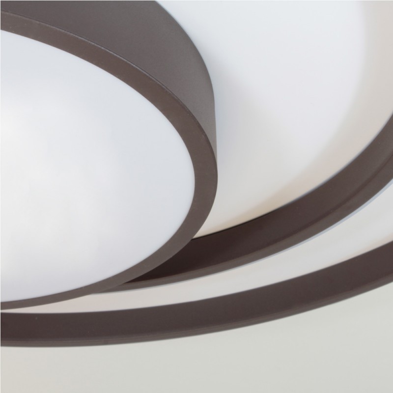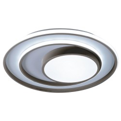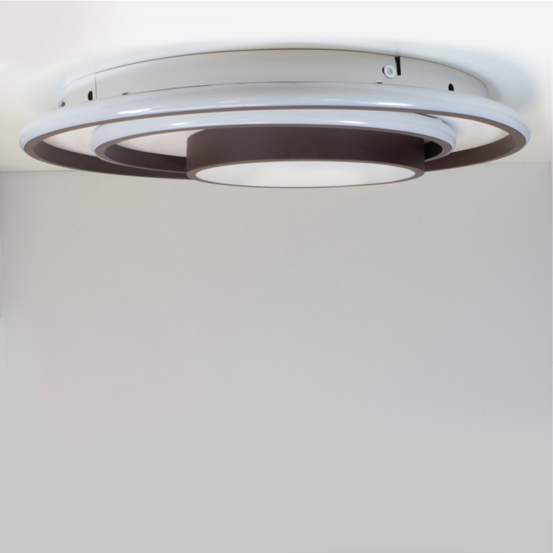 Plafón LED decorativo circular con iluminación led integrada de tres temperaturas. La estructura del plafón permite crear, con sus tiras de iluminación, diferentes ambientes de iluminación. Con el mando incluido, además de ajustar el tono de luz puede regularse la intensidad y encenderse y apagarse. Además, dispone de modo noche de iluminación y función memoria para recuperar la última iluminación configurada.
