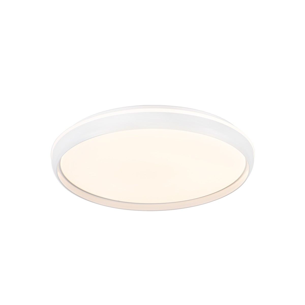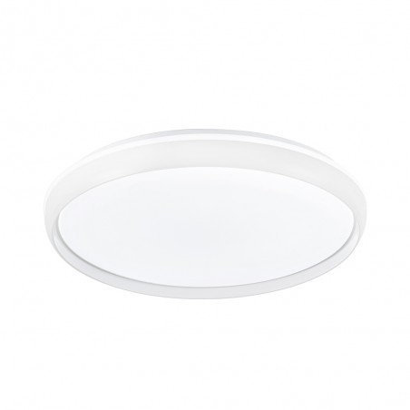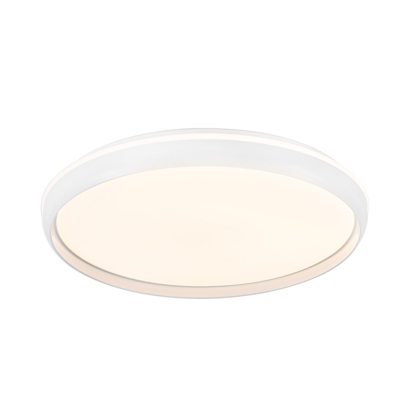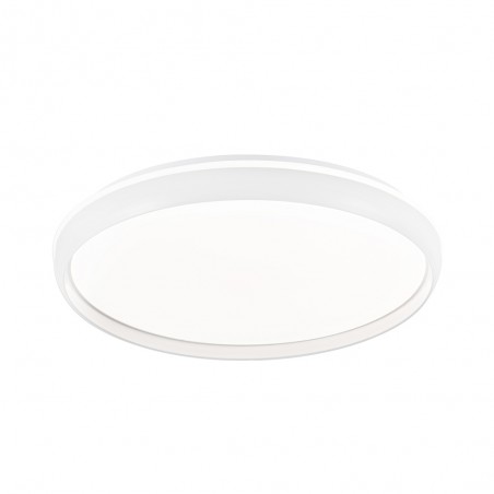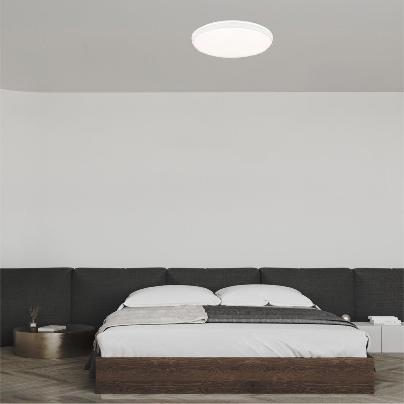Plafón de techo LED 3CCT dimmable Charly. Plafón de techo de 50 centímetros de diámetro diseñado para la iluminación principal de un dormitorio o de un salón. Lleva integrada iluminación LED con tres intensidades (20-50-100%) y tres tonos de color (3000-4000-6000K), además de poder regular ambas gradualmente. Tiene una configuración de luz modo noche, memoria de encendido y temporizador (1-2H) para programar el apagado. Mando a distancia incluido. LED 72W, 7920 lm. y 3CCT.