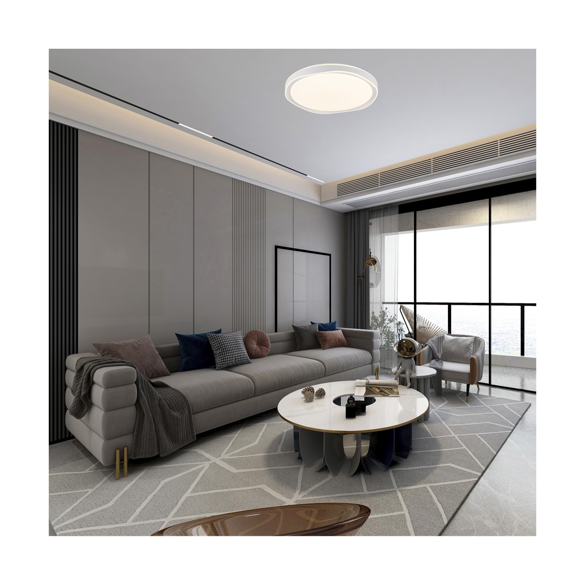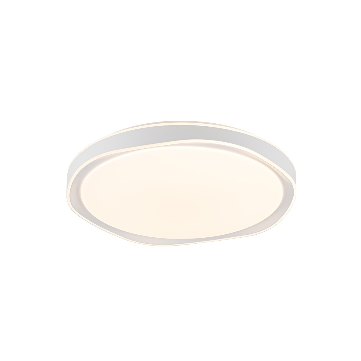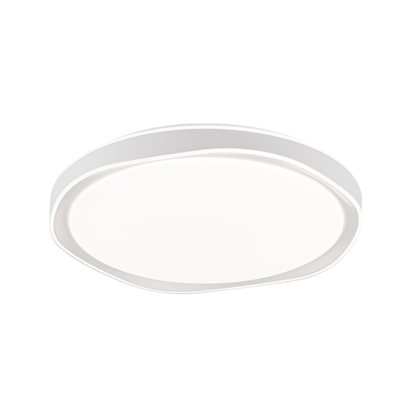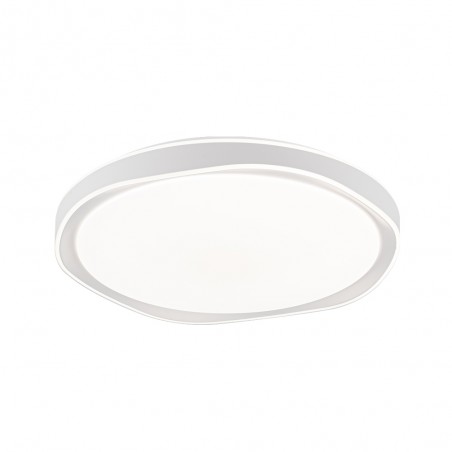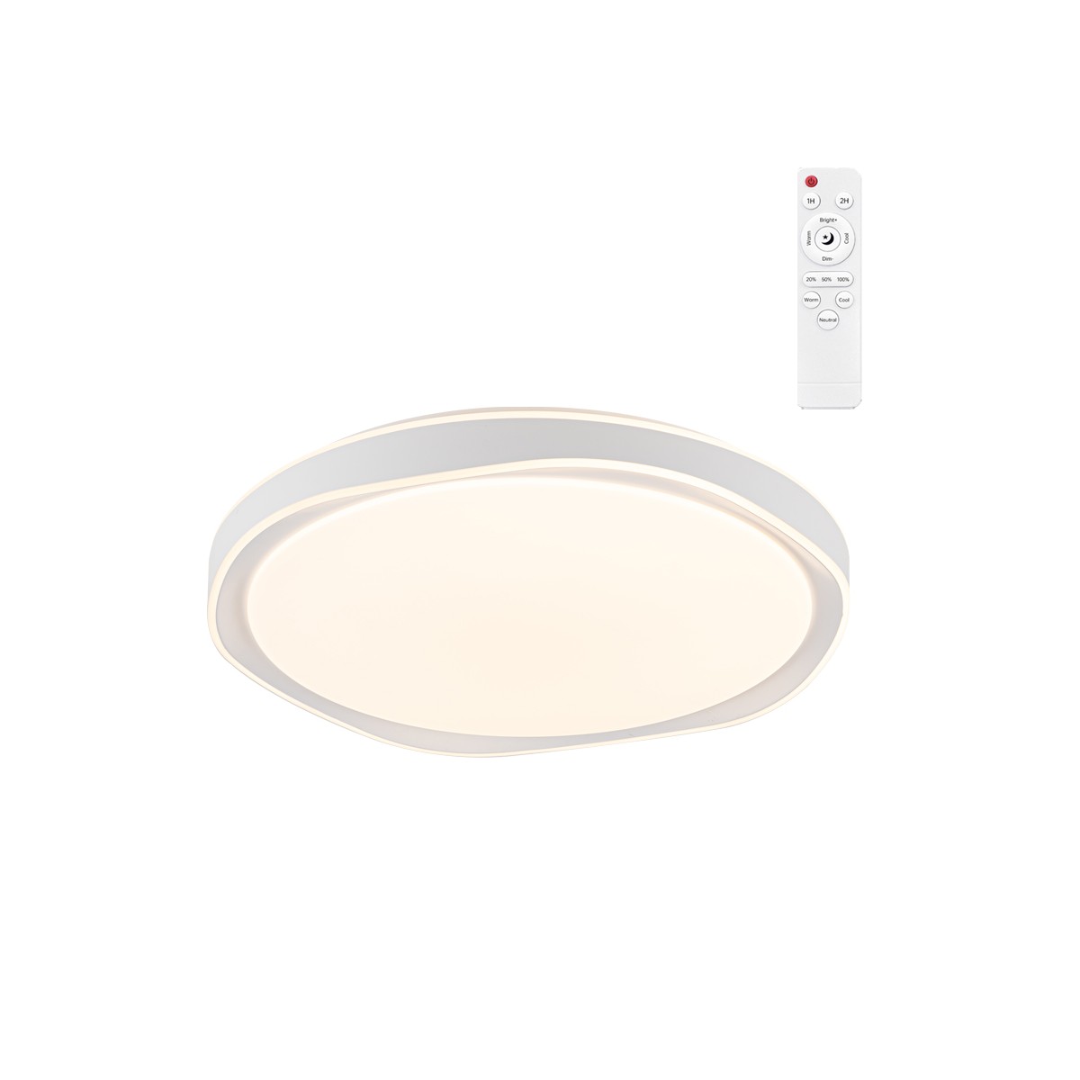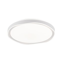Plafón de techo LED 3CCT dimmable Atlas. Plafón de techo de 50 centímetros de diámetro diseñado para la iluminación principal de un dormitorio o de un salón. Lleva integrada iluminación LED con tres intensidades (20-50-100%) y tres tonos de color (3000-4000-6000K), además de poder regular ambas gradualmente. Tiene una configuración de luz modo noche, memoria de encendido y temporizador (1-2H) para programar el apagado. Mando a distancia incluido. LED 72W, 7920 lm. y 3CCT.