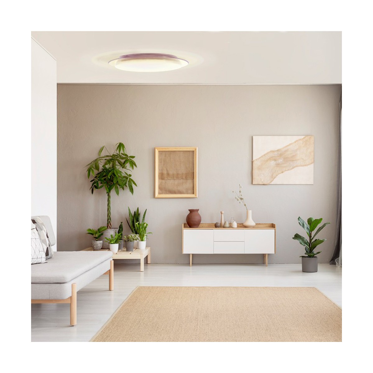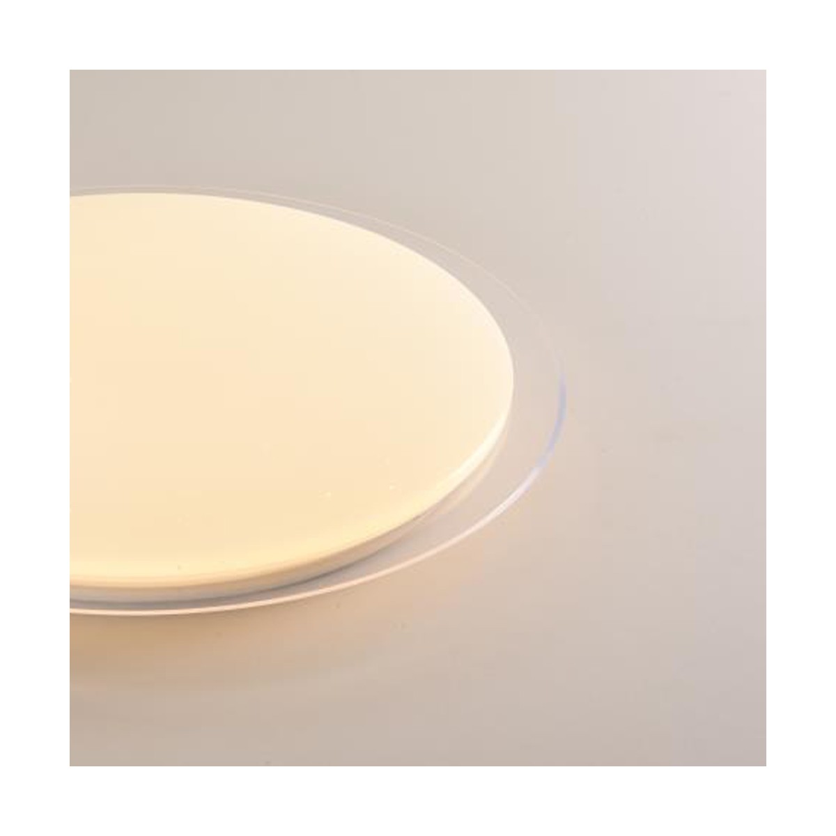 Plafón LED de 60W con tres temperaturas, luz cálida, neutra y fría, dimmable con luz de noche. Incluye mando a distancia. Difusor con efecto estrellas de 57cm de diámetro