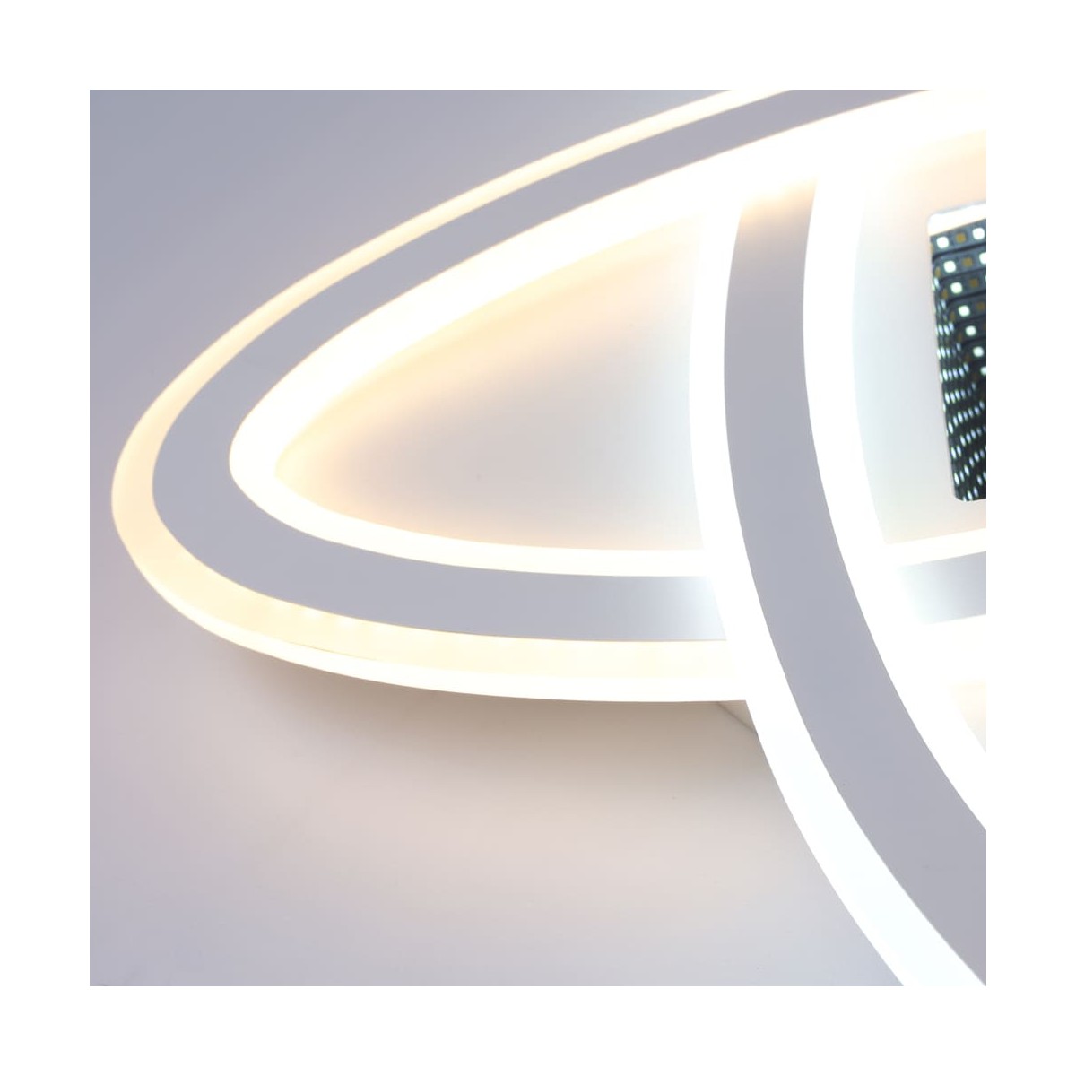 Plafón LED decorativo con iluminación led integrada de tres temperaturas. La estructura del plafón crea diferentes aros de luz que pueden combinarse con diferentes tonos de luz creando diferentes luces. Con el mando incluido, además de ajustar el tono de luz puede regularse la intensidad y encenderse y apagarse. dispone de modo noche de iluminación y función memoria para recuperar la última iluminación configurada.