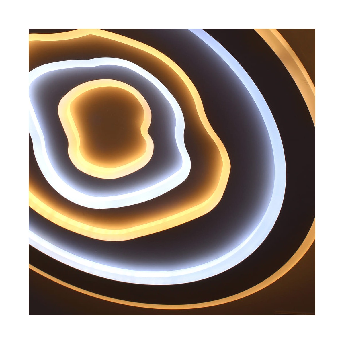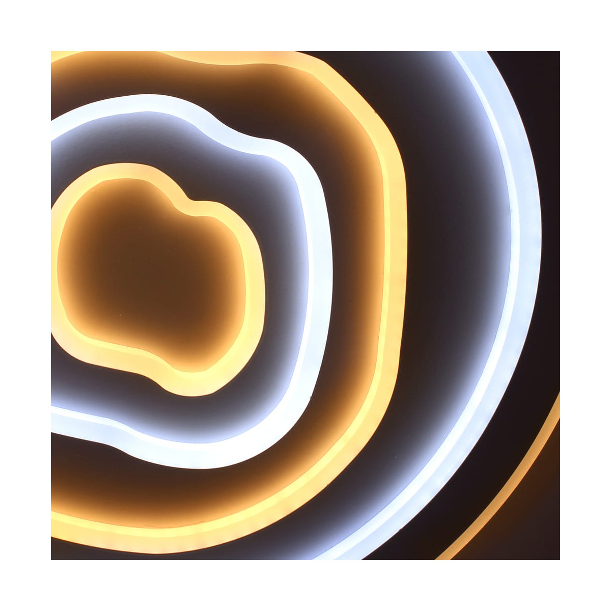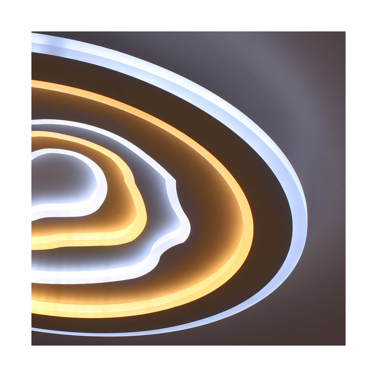 Plafón de techo decorativo smart con tres tonos de luz. Tanto desde la App móvil como desde el mando incluido puedes regular la intensidad y el color de la luz y poner el modo noche configurado por defecto. Cuenta con función memoria para recuperar la última iluminación configurada.