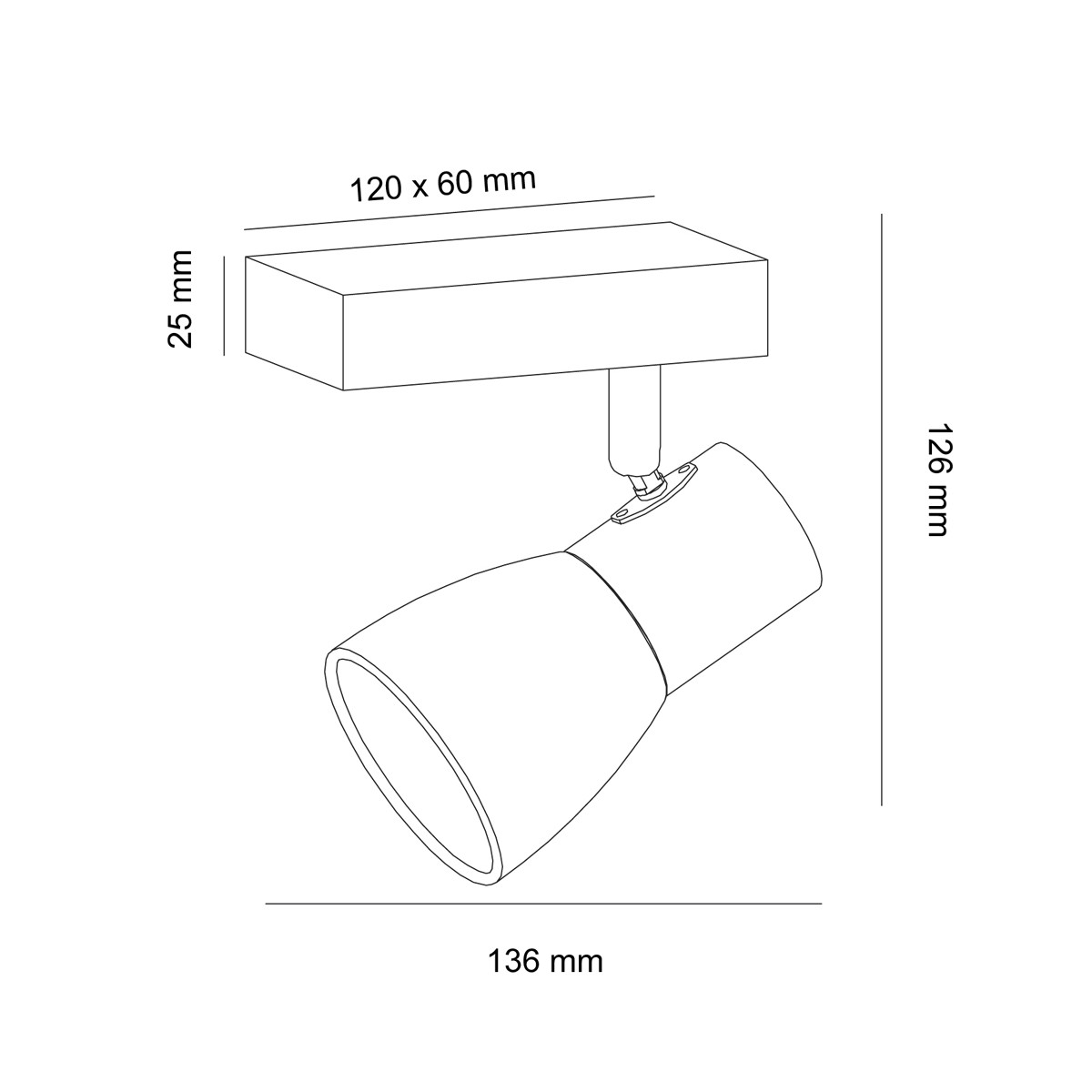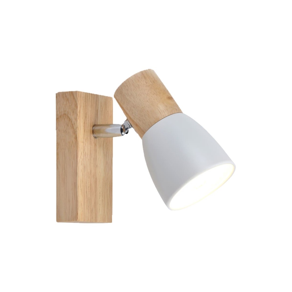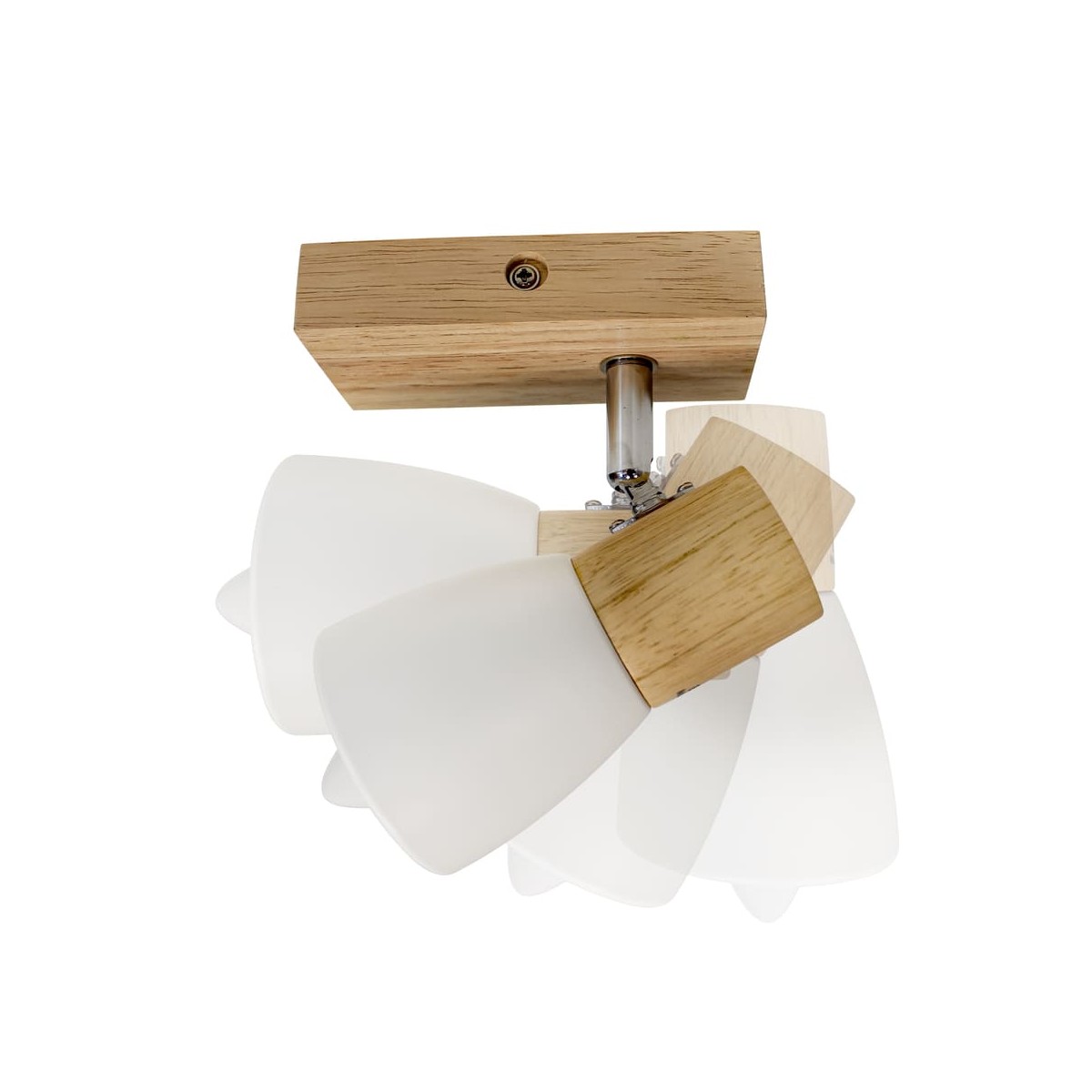 Plafón de techo decorativo con un foco de aluminio para bombillas E14, no inlcuidas. El foco, lacados en blanco, pueden moverse para dirigir la luz al punto deseado. La base de 67x6 cm es de madera natural.