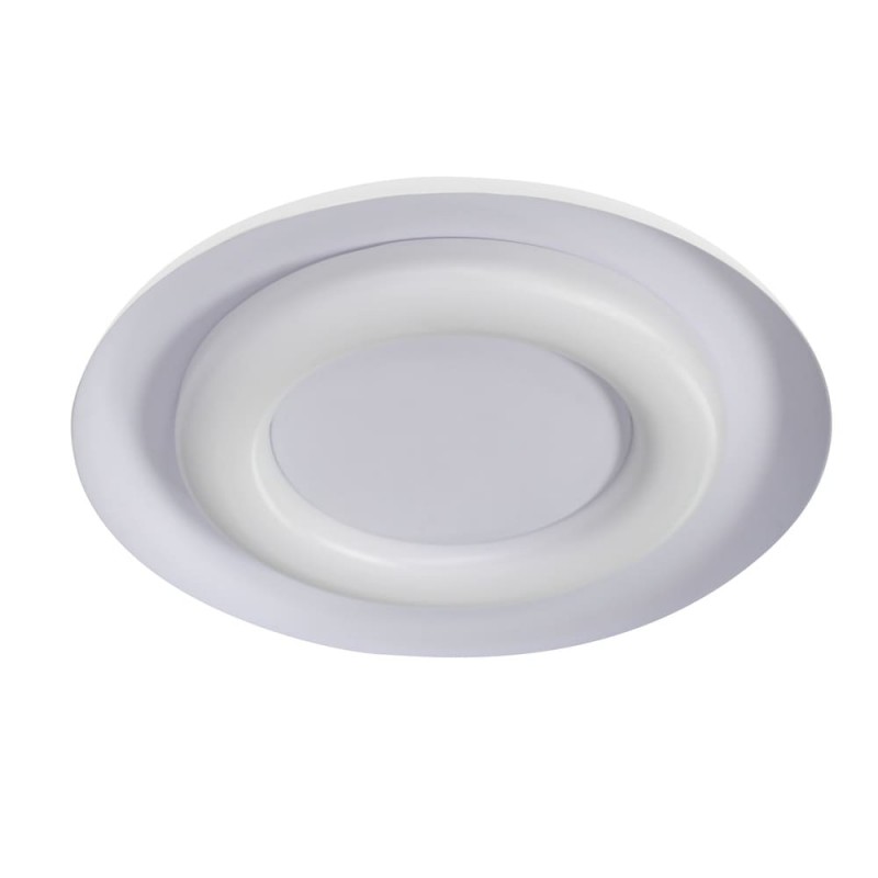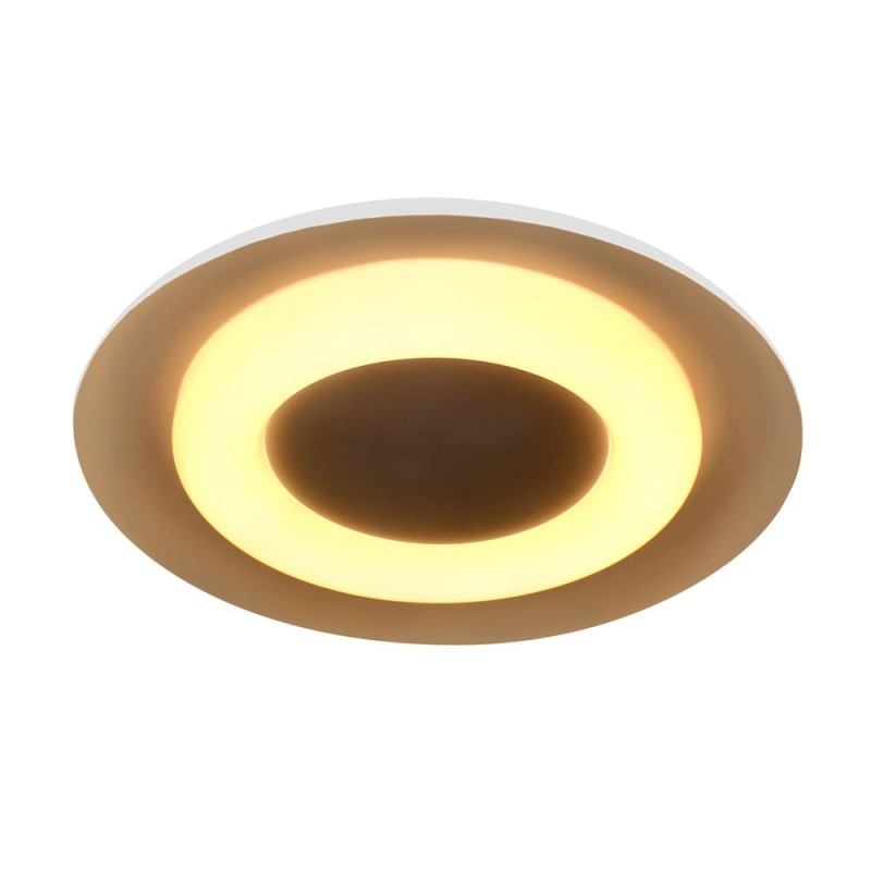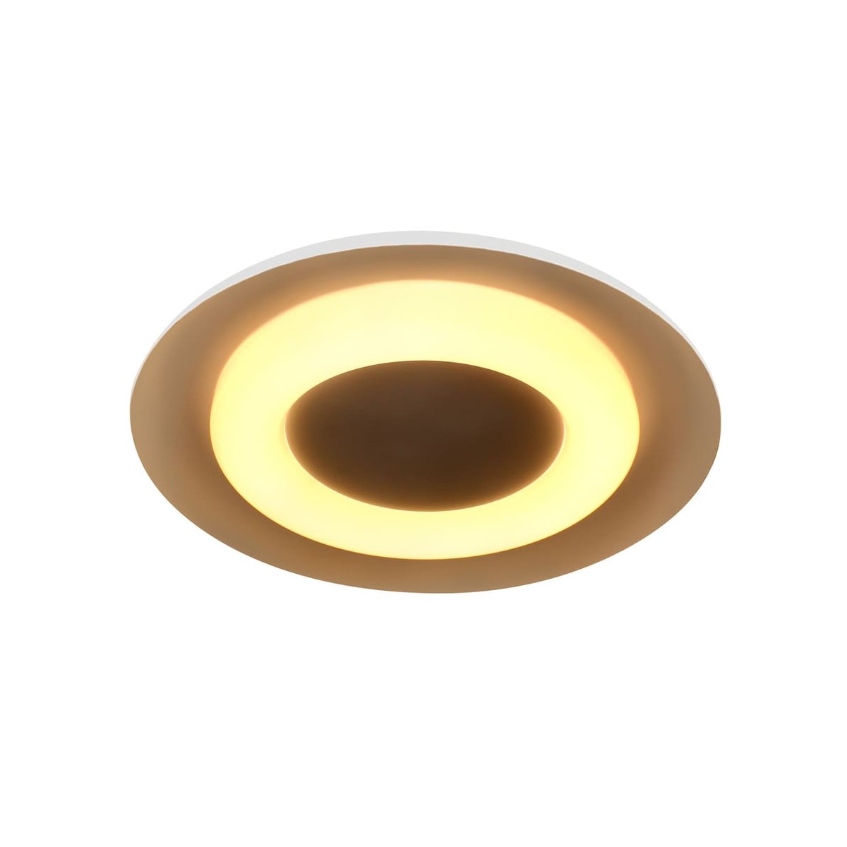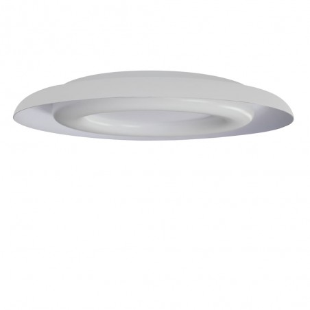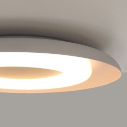 Plafón de techo para cocinas y salones modernos. Plafón de techo circular fabricado en aluminio de color blanco y difusor de policarbonato. La luz se proyecta de forma uniforme a través del difusor en aro para iluminar estancias como salones o cocinas. Lleva integrada iluminación LED en tono cálido y potencia de 36W.