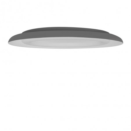 Plafón de techo LED Jara de 48W. Plafón de forma circular con difusor de aro, perfecto para instalar como fuente de luz principal de una estancia. Fabricado en aluminio, la parte exterior es de color gris y el interior de color blanco. Iluminación LED en tono cálido (3000ºK) aportando una confortable luz en la estancia que decidas iluminar.