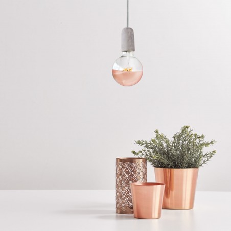 Bombilla LED de 95 mm de díametro con media cúpula de efecto espejo en cobre. Bombilla vintage de filamentos LED, con luz cálida de 2700K, 6w de potencia y 700 lúmenes.