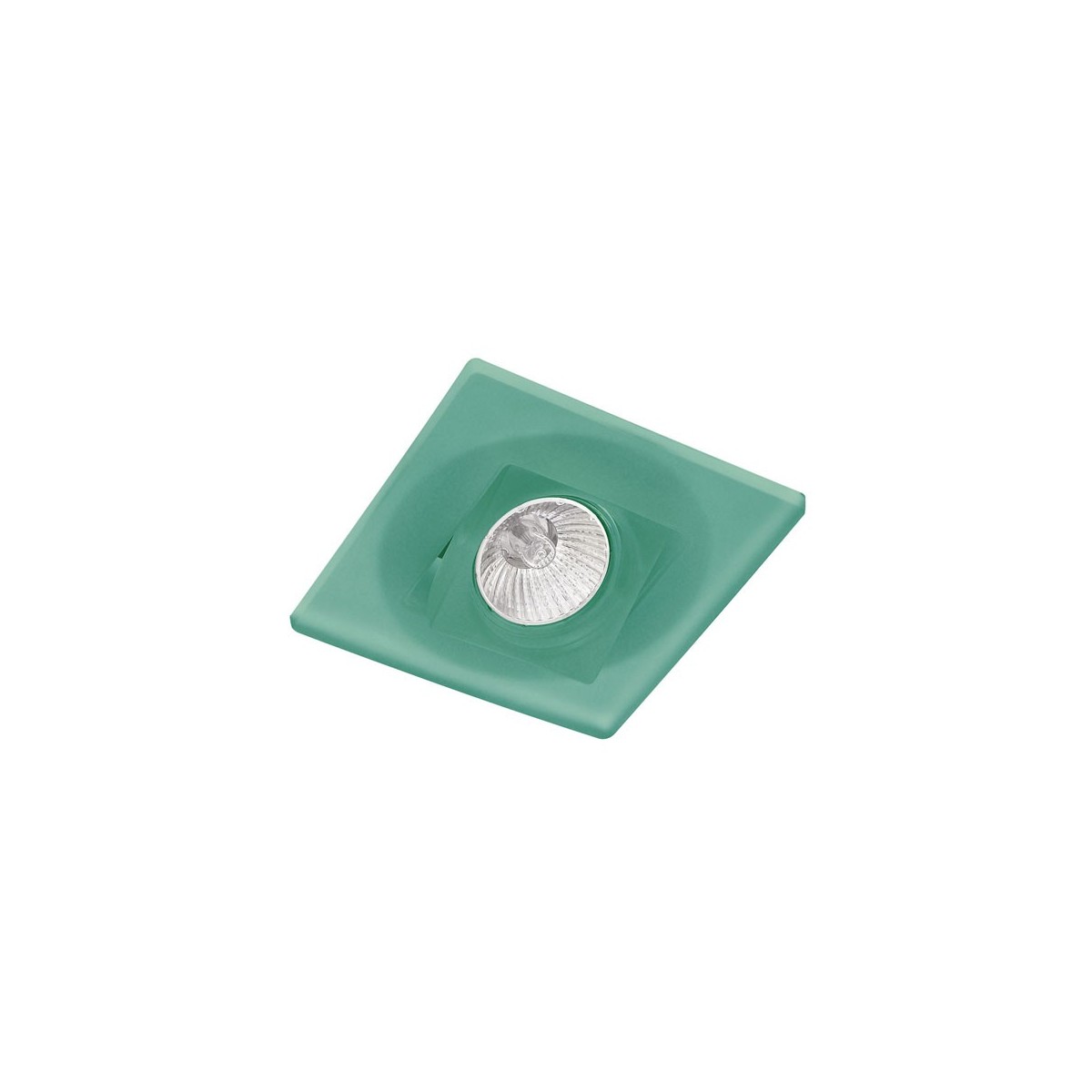 Empotrable basculante con estructura de aluminio y cristal prensado en color verde. Dimensiones 120 x 120 x 40 mm. Tipo de casquillo GU5.3.