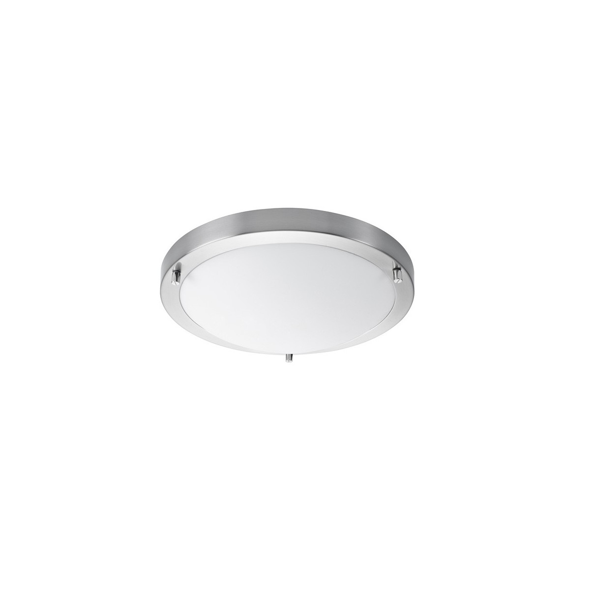 Plafón LED con estructura de aluminio acabado en color blanco y cristal. IP43. Perfecto para cocinas y baños.