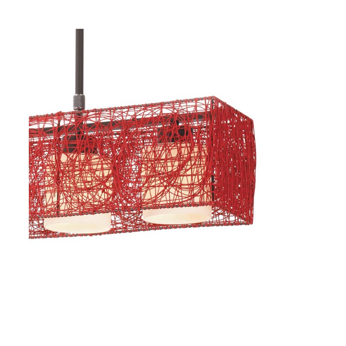 Lámpara de techo con pantalla rectangular de papel de lino acabada en color rojo y tulipas redondeadas de cristal. Bombillas: 3 x E27 (no incluidas).
