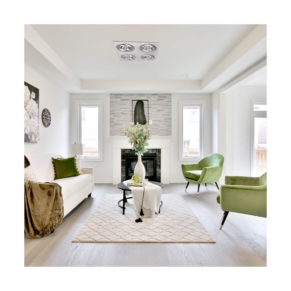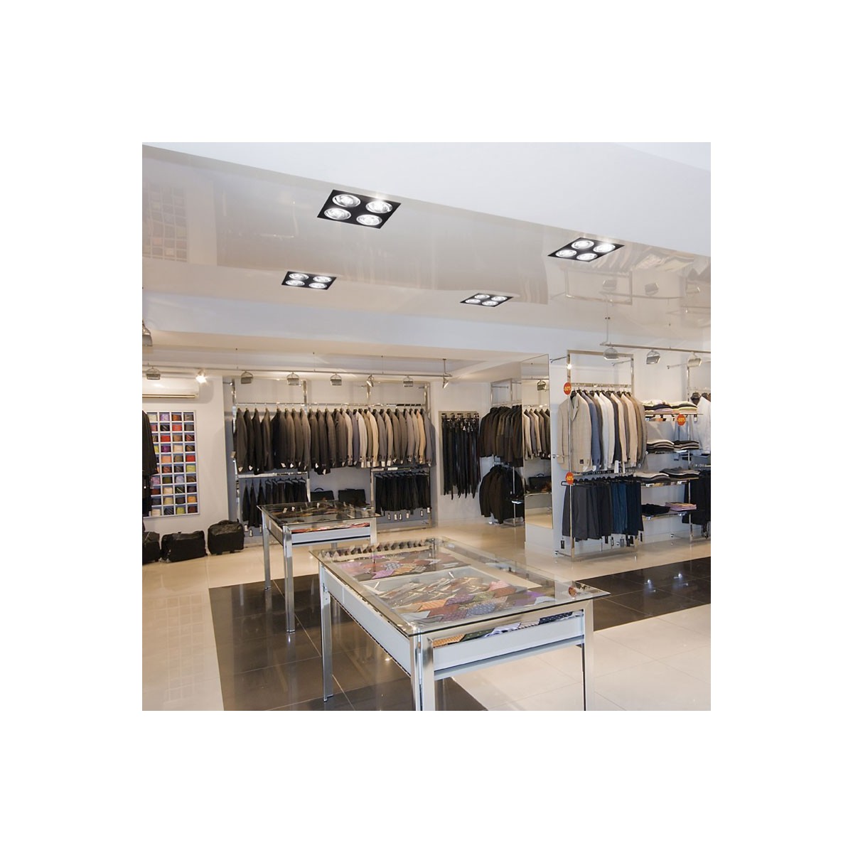 Empotrable para el techo para 4 luces de gran tamaño realizado en aluminio. Portalámparas GU53 incluidos. Ángulo basculación: 30º, pudiendo orientar la luz al punto deseado. Perfecto para iluminación en pasillos, salones, dormitorios, comercios...