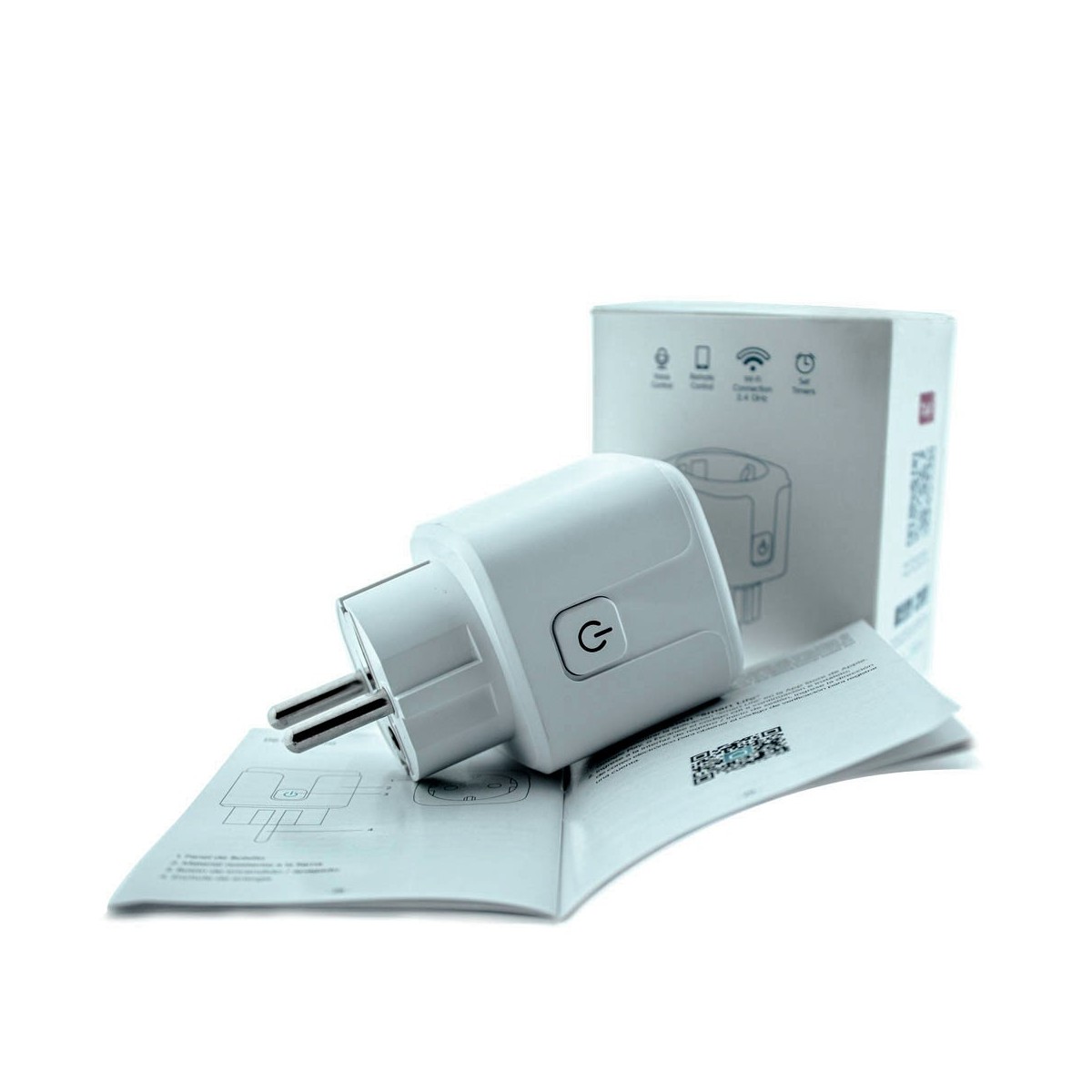 Enchufe smart de un zocalo, soporta una potencia máxima de 3680W. Funciona con la App Tuya y es compatible con Amazon Alexa y Google Assistant. Permite encender y apagar cualquier aparato que este conectado al enchufe de manera manual o estableciendo sus horas de encendido y apagado.