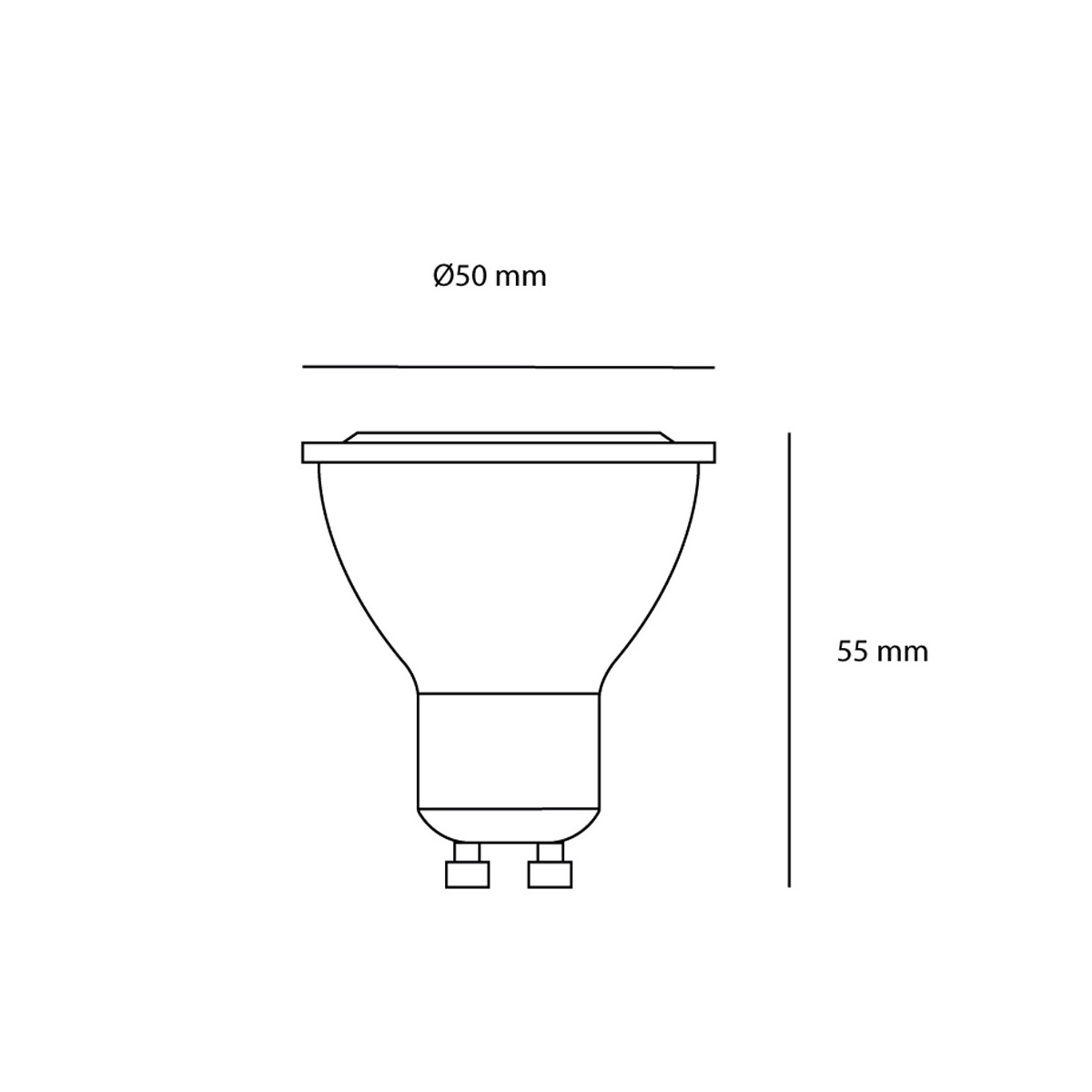 Bombilla smart de 5W con tres temperaturas y regulable para portalamparas GU10. Puedes controlarla desde tu smartphone o iPhone con la App Tuya y es compatible con los dispositivos Amazon Alexa y Google Assistant.