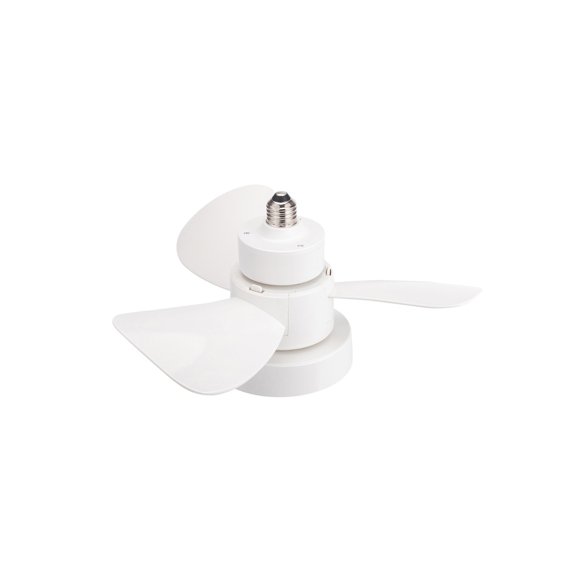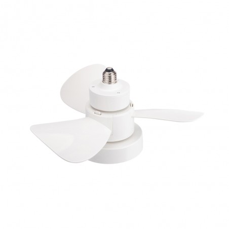 Ventilador con rosca E27 Bayad. Ventilador compacto de tres velocidades diseñado para colocar en un portalámparas o una base E27. Muy práctico para aportar un agradable flujo de aire en cualquier lugar. Además, lleva integrada iluminación LED de 15W regulable en intensidad y temperatura de color. Peso: 0.7 Kg.