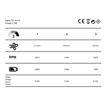- Flujo de aire m³/hr