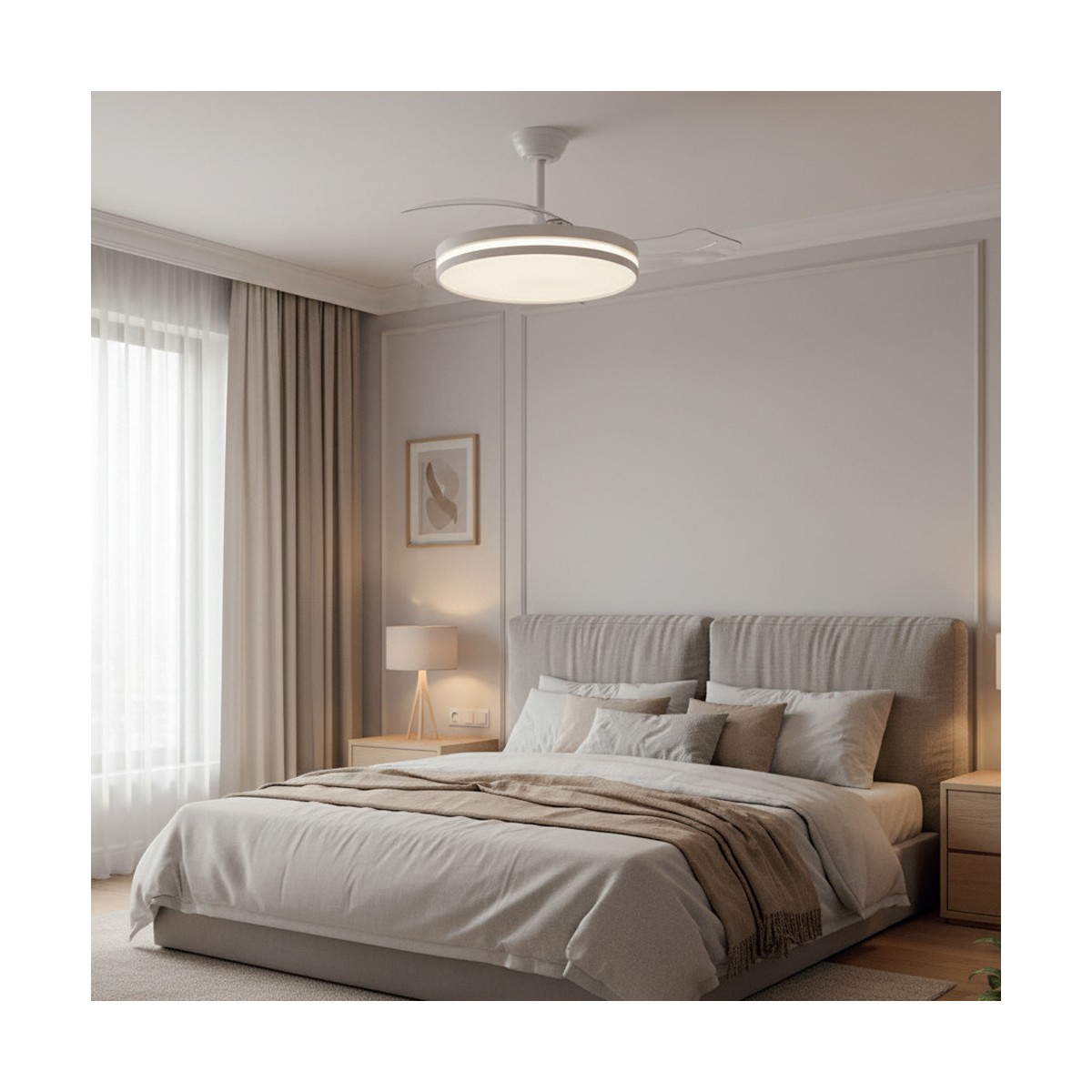 Ventilador LED aspas retráctiles Ferro Eco 48W 5280Lm CCT Dim