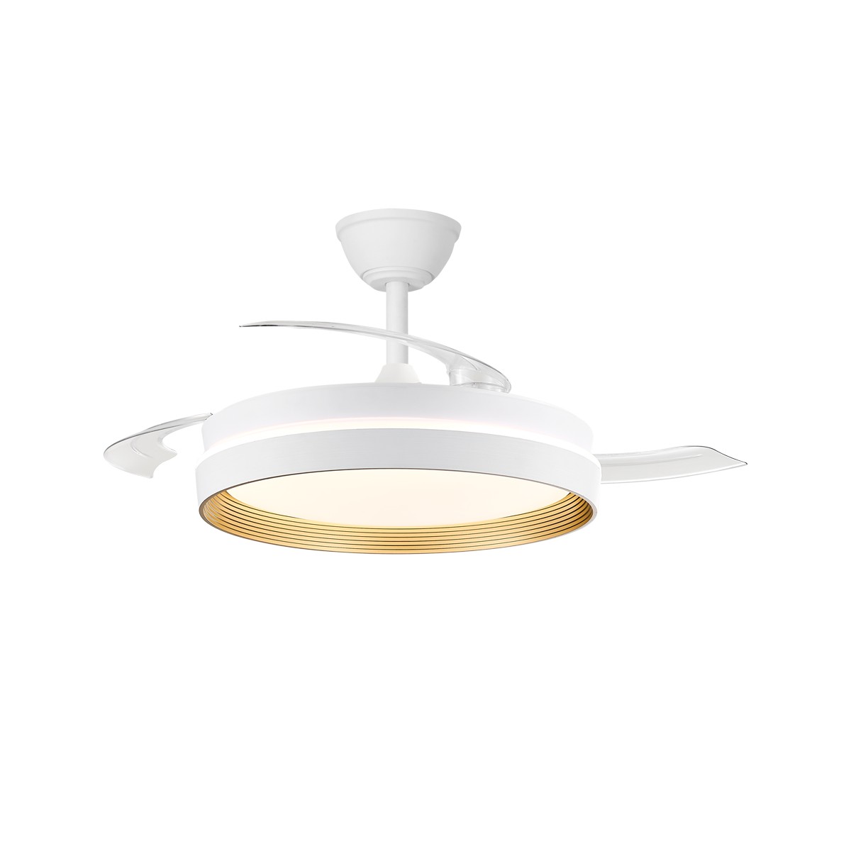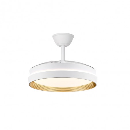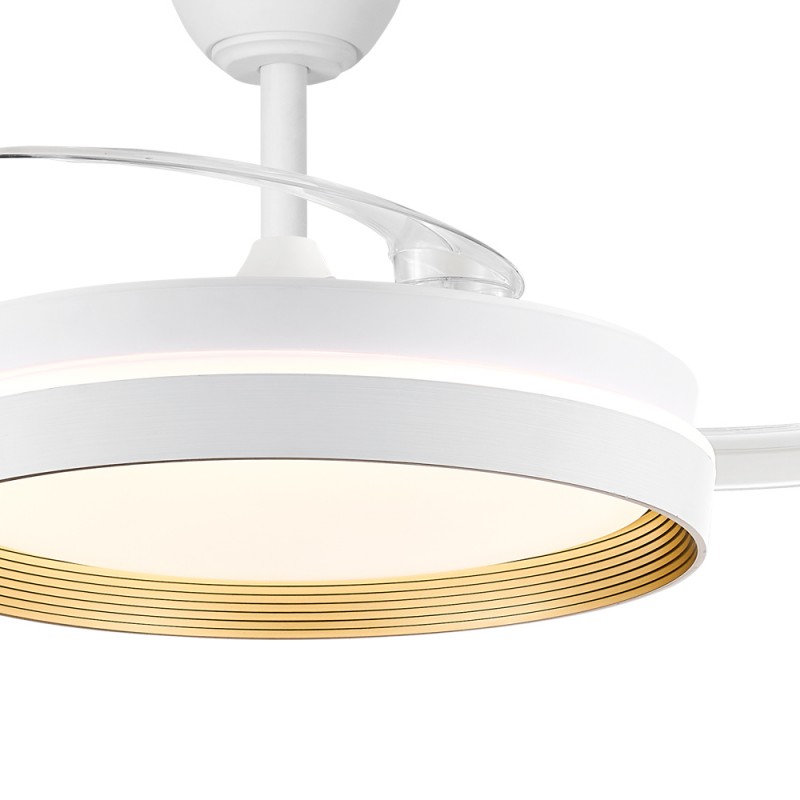 Ventilador LED aspas retráctiles Fiber Blanco+Madera 48W 5280Lm CCT Dim