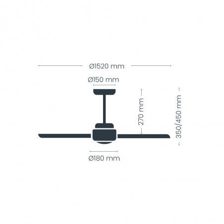 Ventilador de techo Nine Big con luz LED para estancias amplias. Diseño de estilo nórdico con estructura de metal níquel y tres aspas de madera natural. Con el mando a distancia puedes controlar la velocidad de giro y regular la iluminación. Motor DC silencioso de seis velocidades de giro y función inversa inverno-verano.
